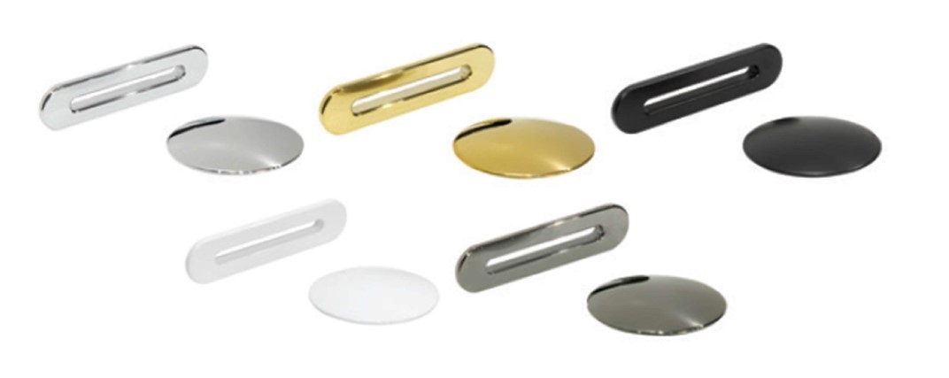 Součástí vany je i click-clack sifon se slim oválnou krytkou přepadu a ten si můžete vybrat z těchto barev: