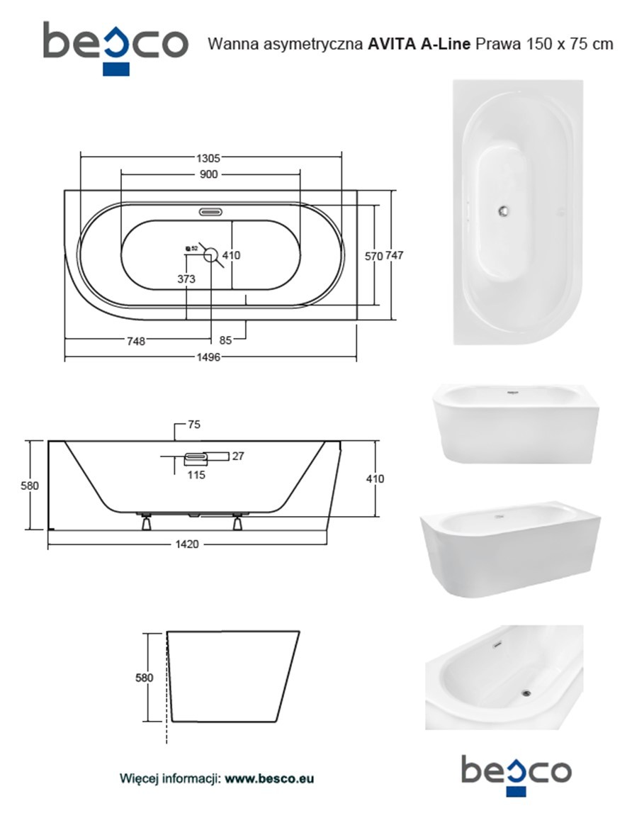 Vana v levém/pravém provedení k montáži do rohu AVITA A-LINE v bílé lesklé barvě se Vám odmění pocitem vysokého komfortu. Budete ležet v lázni a kolem Vás bude dost místa, nic ...Více informací