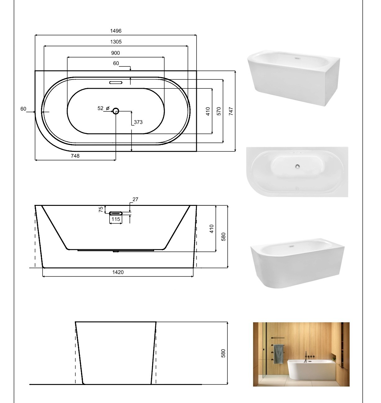 38 190,00 CZKvana volně stojící AVITA A-LINE, 1500 × 750 mm, bílá barva, pravé provedení, sifon s přepadem chrom