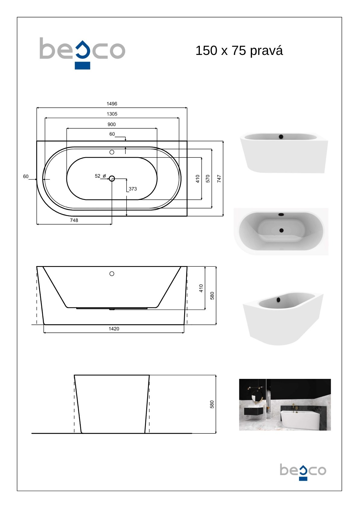 | Rozměr vany | 150 × 75 cm |