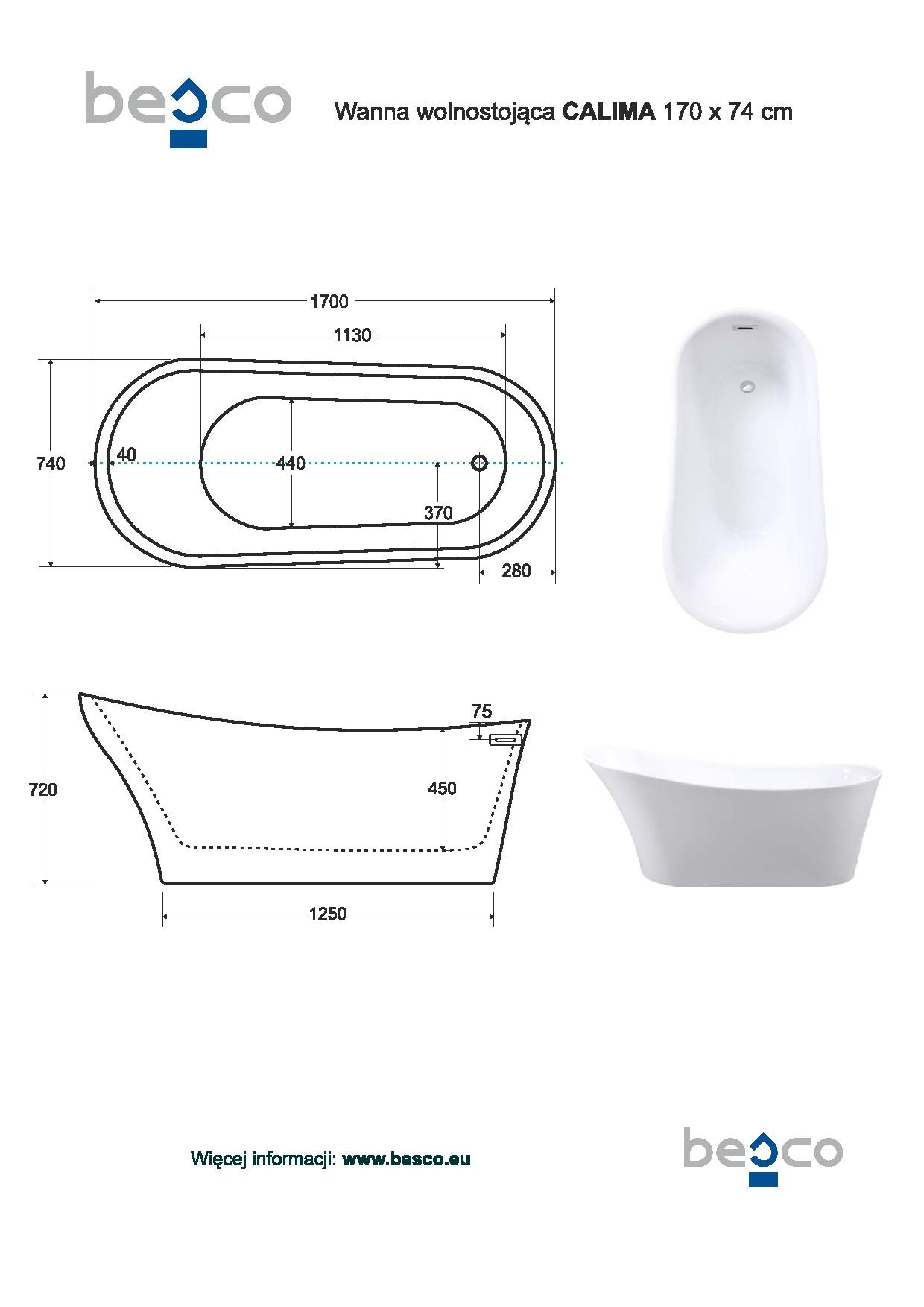 | Rozměr vany | 170 × 74 cm |