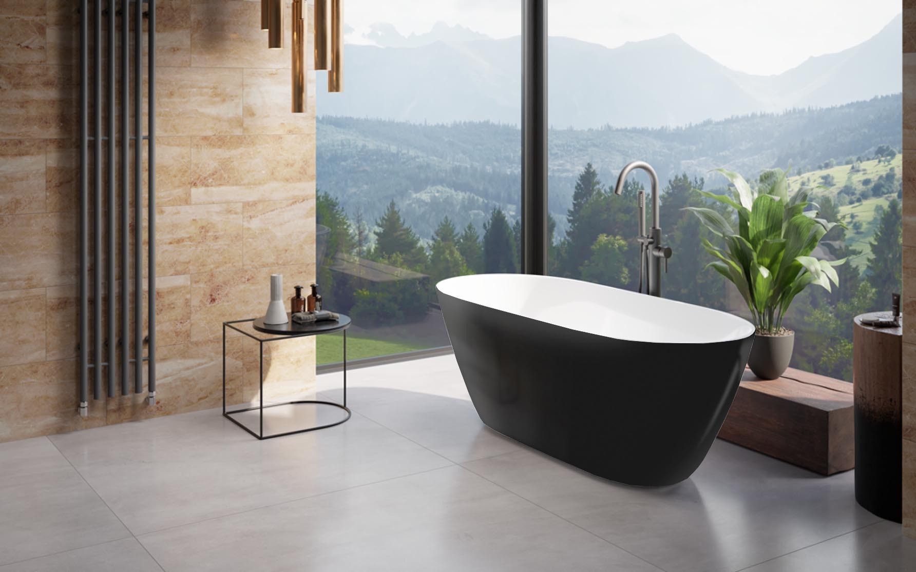 Samostatně stojící vana MOYA v černé lesklé / bílé barvě se Vám odmění pocitem vysokého komfortu. Budete ležet v lázni a kolem Vás bude dost místa, nic Vás nebude omezovat. Va ...Více informací