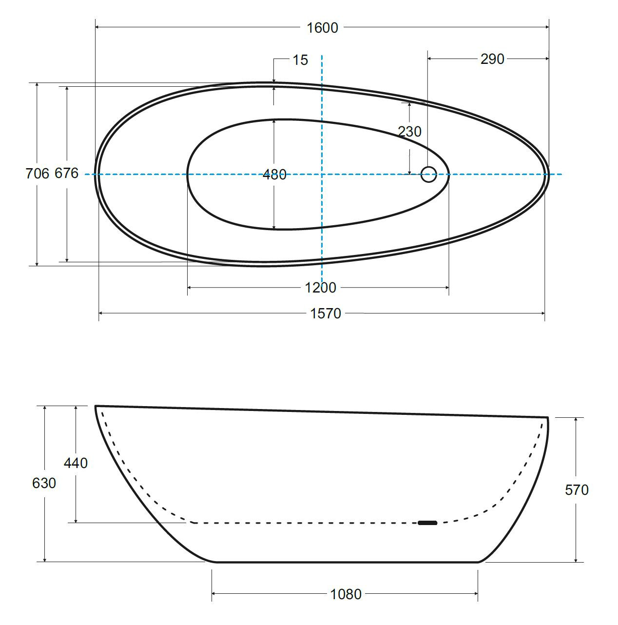 - 160 × 70 cm, objem 170 l