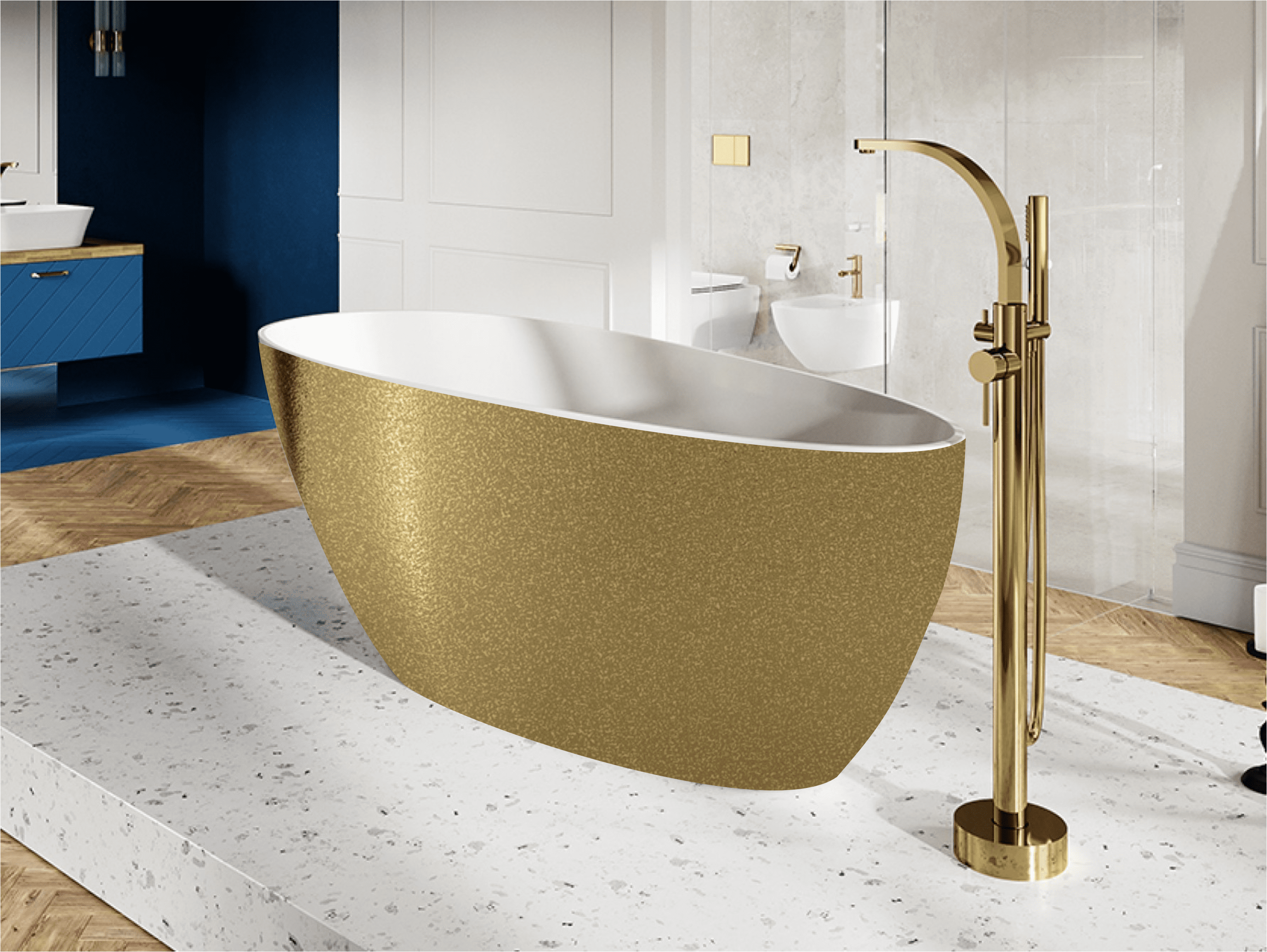 55 590,00 CZKvana volně stojící z litého mramoru GOYA 1600x700 mm, GLAM01 zlatá barva / bílá barva, sifon chrom