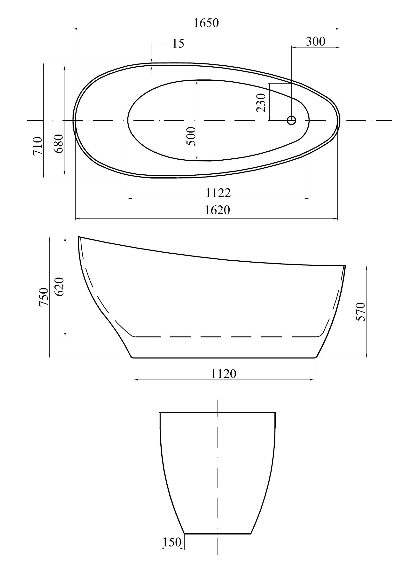 Rozměr volně stojící vany: