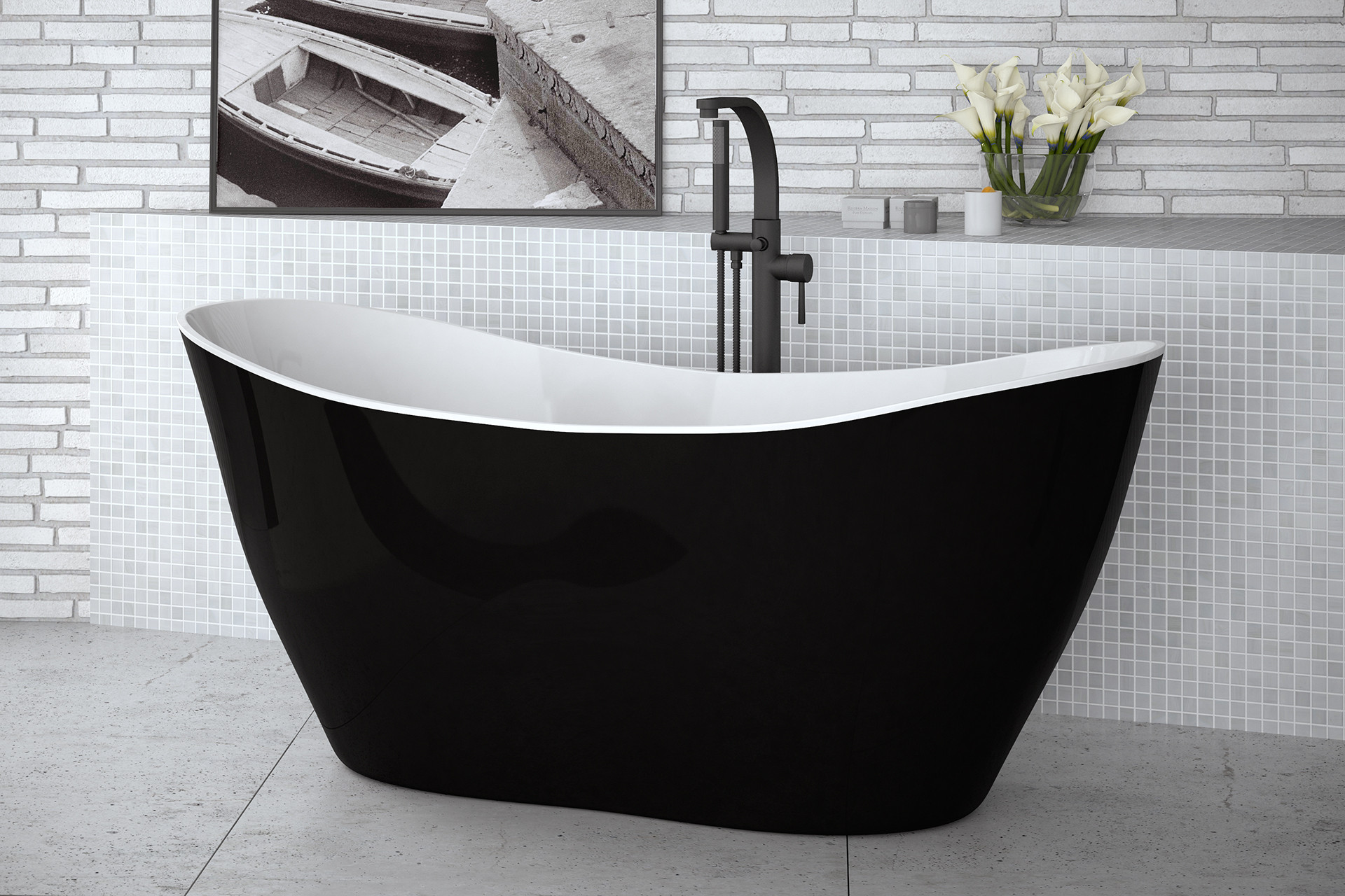 52 490,01 CZKvana volně stojící z litého mramoru VIYA 1600x700 mm, černá / bílá barva, sifon chrom