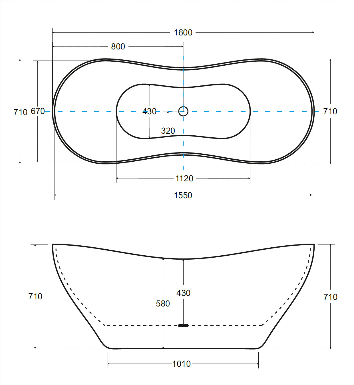 Rozměr volně stojící vany: