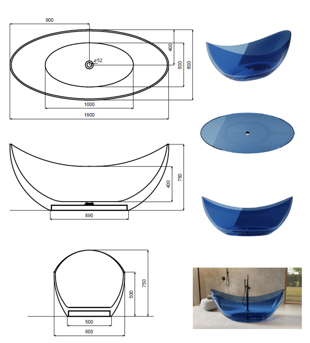 Oboustranná vana do prostoru AXYA se Vám odmění pocitem vysokého komfortu. Budete ležet v lázni a kolem Vás bude dost místa, nic Vás nebude omezovat. Vany jsou vyrobené ze syntetické pryskyřice se vyznačují průhledností materiálu a dokonale hladkým povrchem. Hladký  povrch umožňuje jeho snadnou údržbu. Součástí vany je i kvalitní odtoková souprava (systém bez přepadu, click/clack).