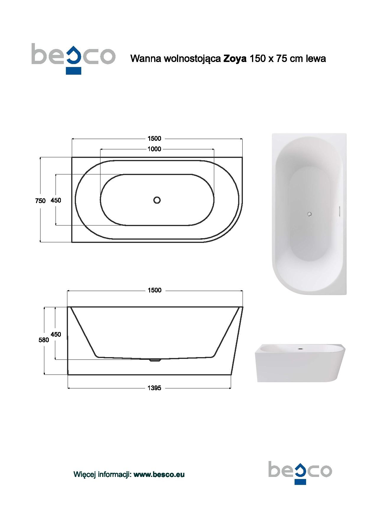 | Rozměr vany | 150 × 75 cm |
