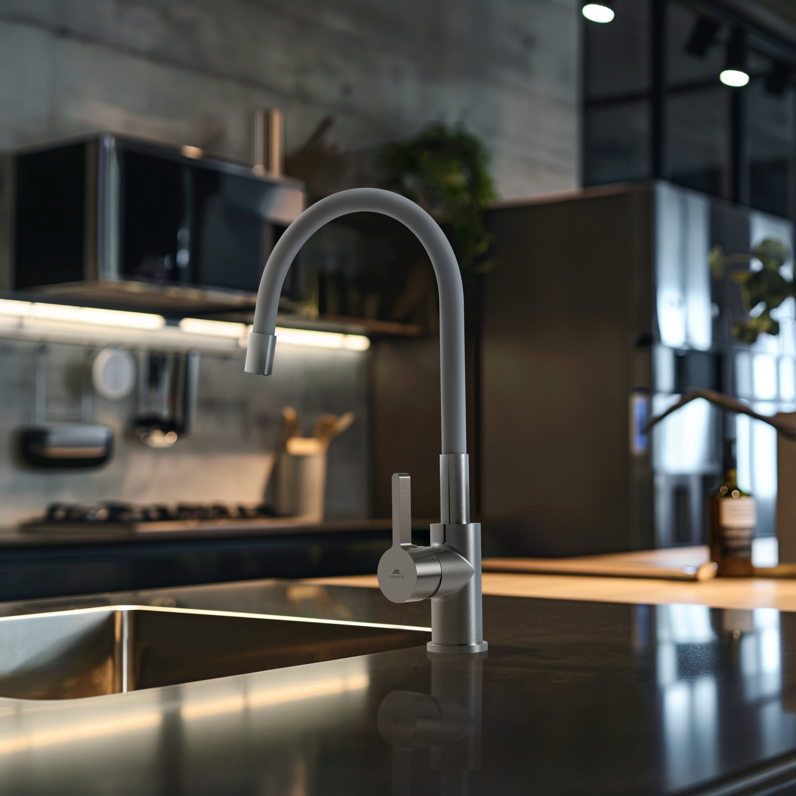 Přednosti dřezové stojánkové vodovodní baterie FLEXY-33 NEW v tmavě šedé barvě: