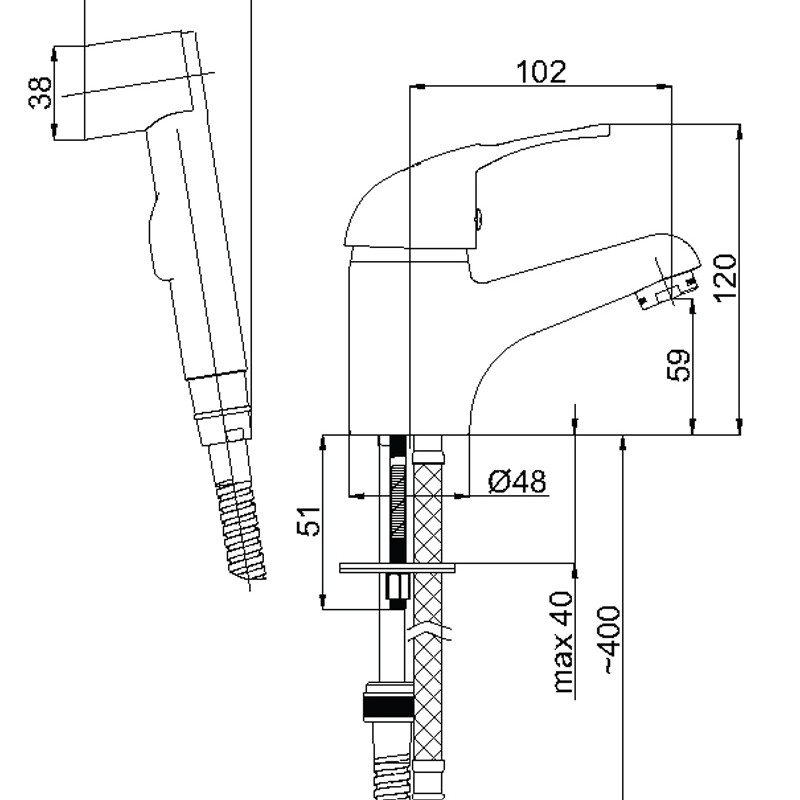 - umyvadlová stojánková baterie s bidetovou sprškou
