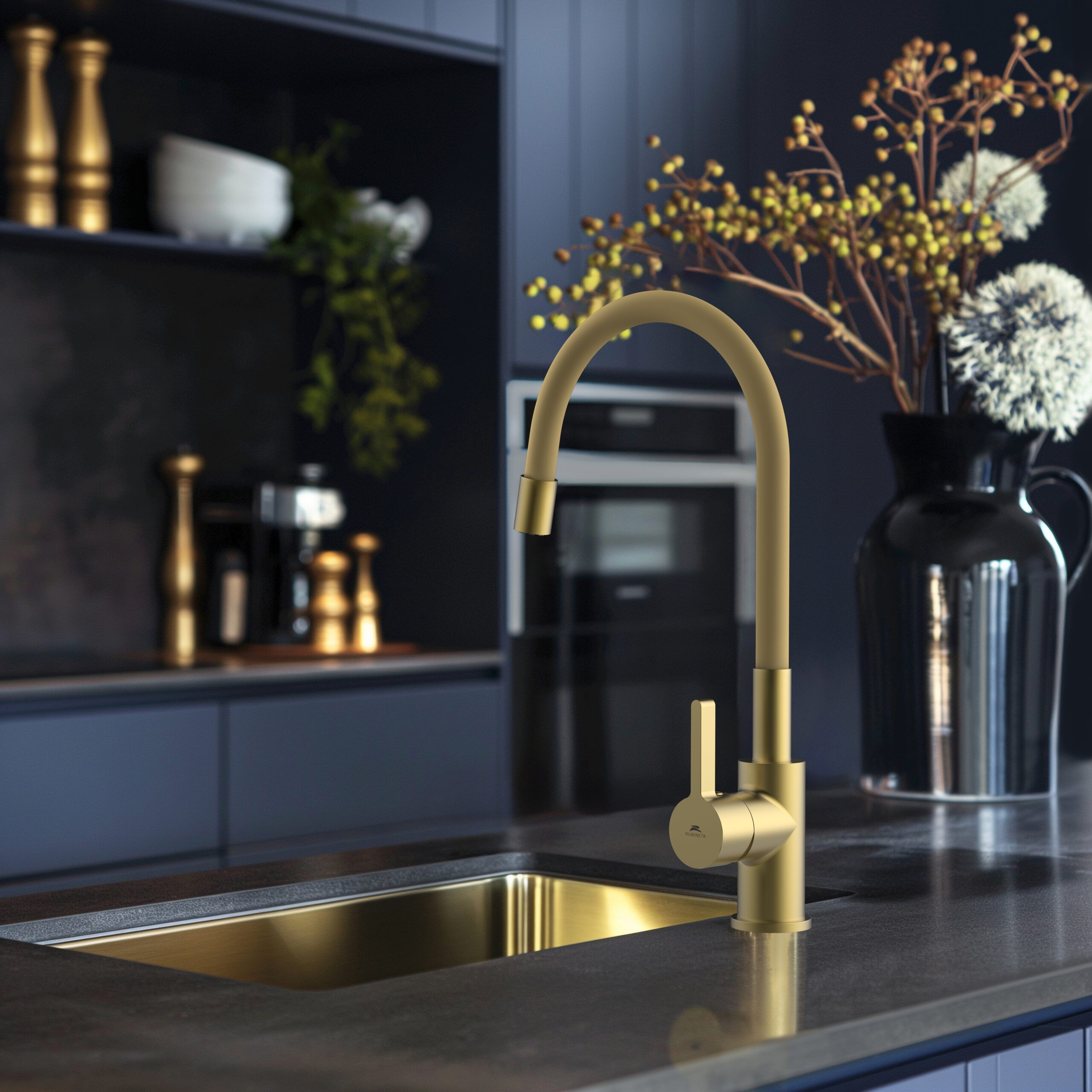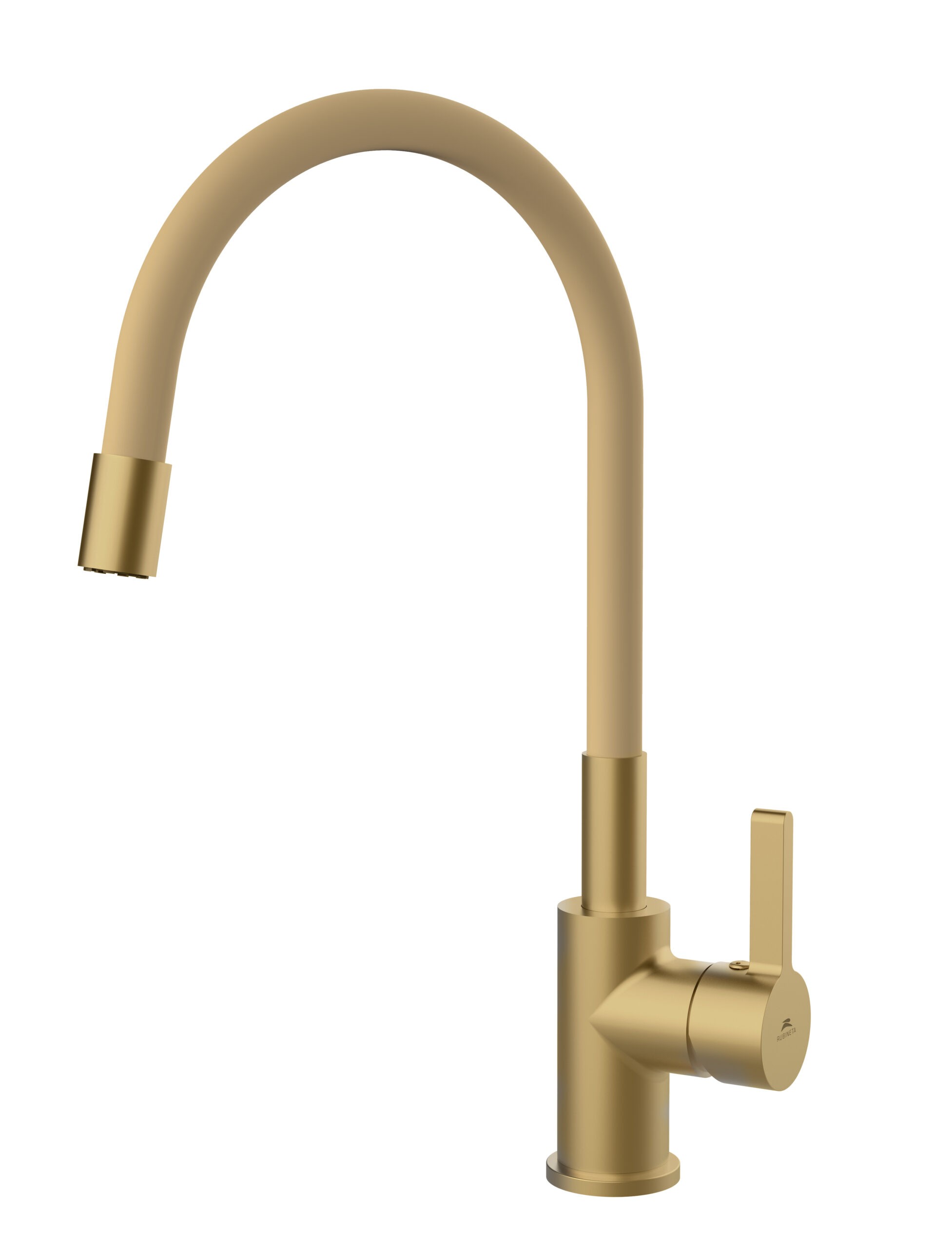 Přednosti dřezové stojánkové vodovodní baterie FLEXY-33 NEW ve zlaté barvě: