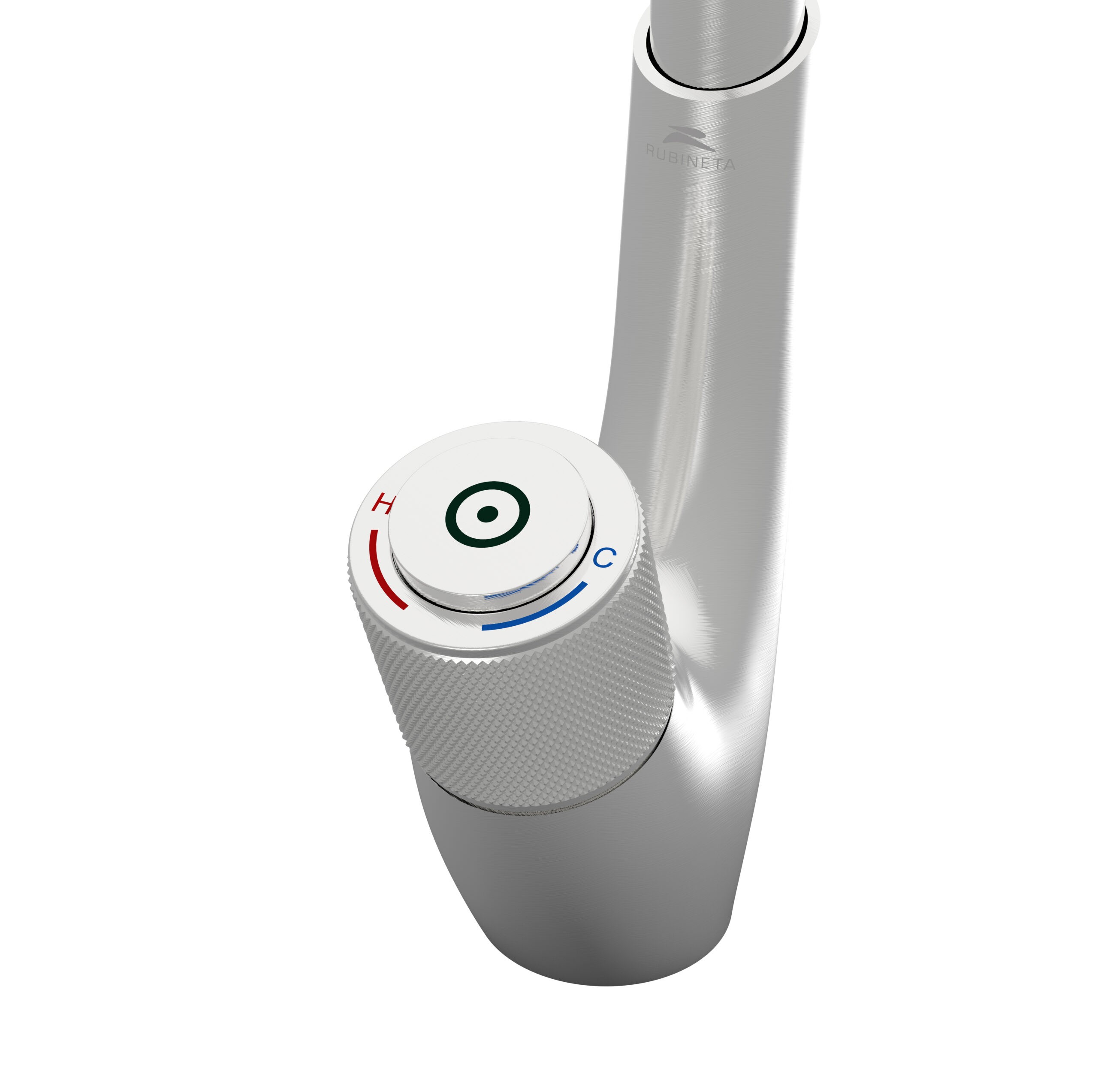 Dřezová stojánková vodovodní baterie SWAN-33 Nerez vyniká vysoce kvalitním zpracováním a spolehlivou funkčností všech součástí a materiálů.
