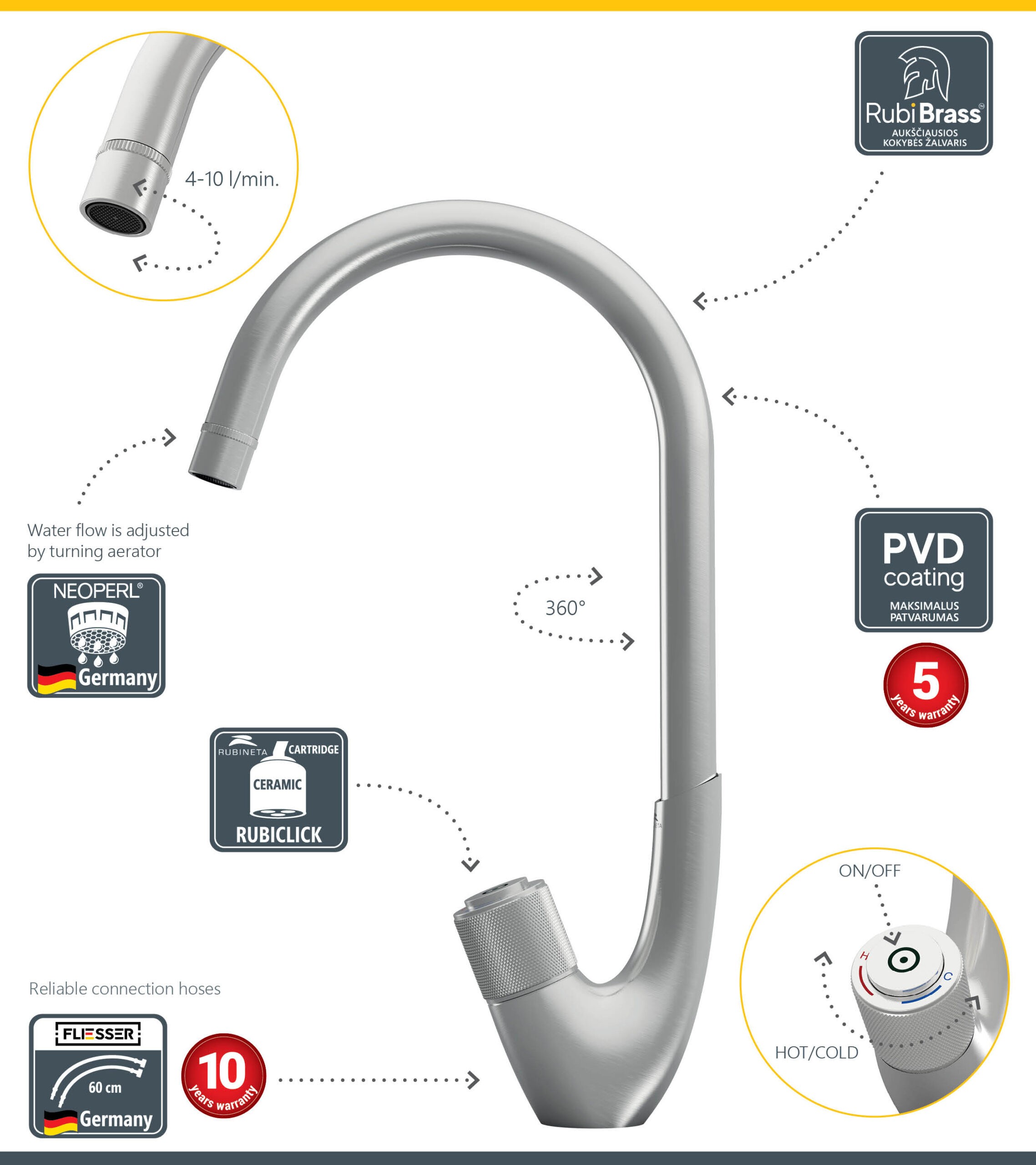 Přednosti dřezové stojánkové vodovodní baterie SWAN-33 Nerez: