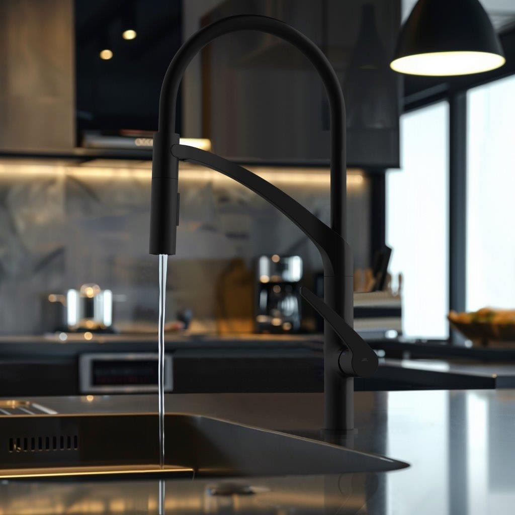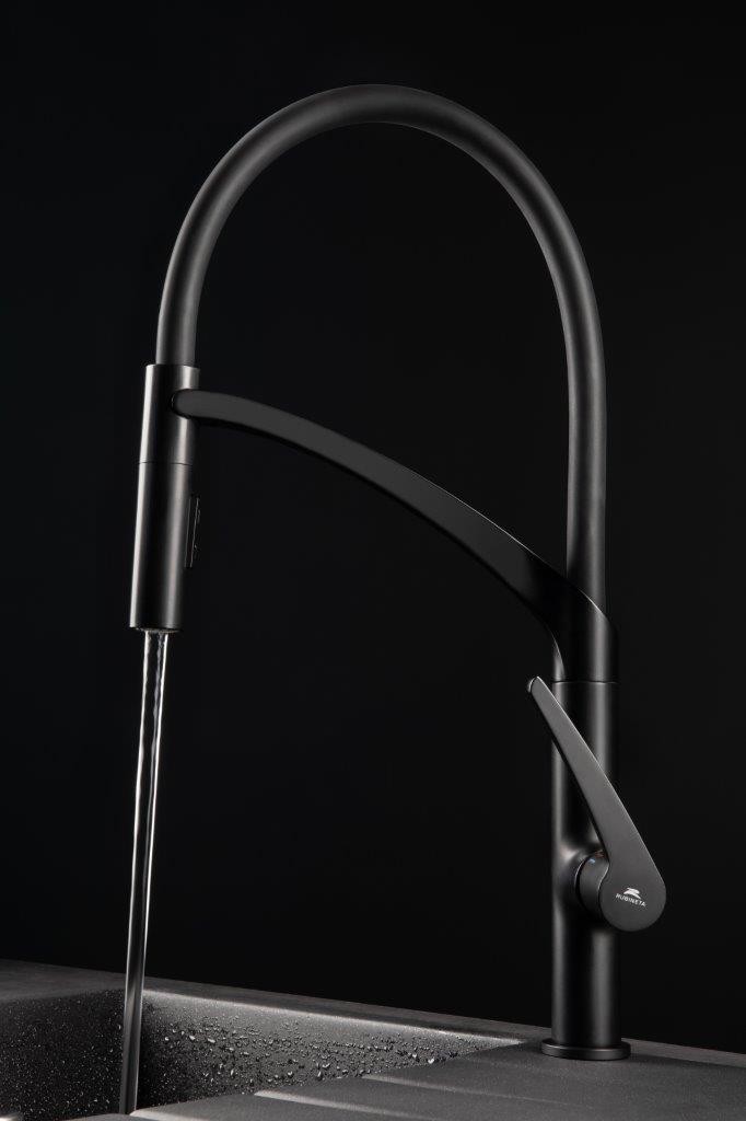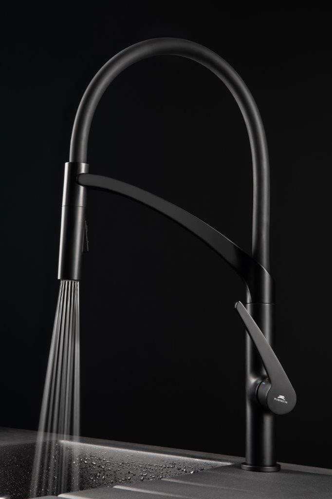 - Flexibilním masivní rameno se sprškou v černé barvě, uchycování spršky pomocí magnetu