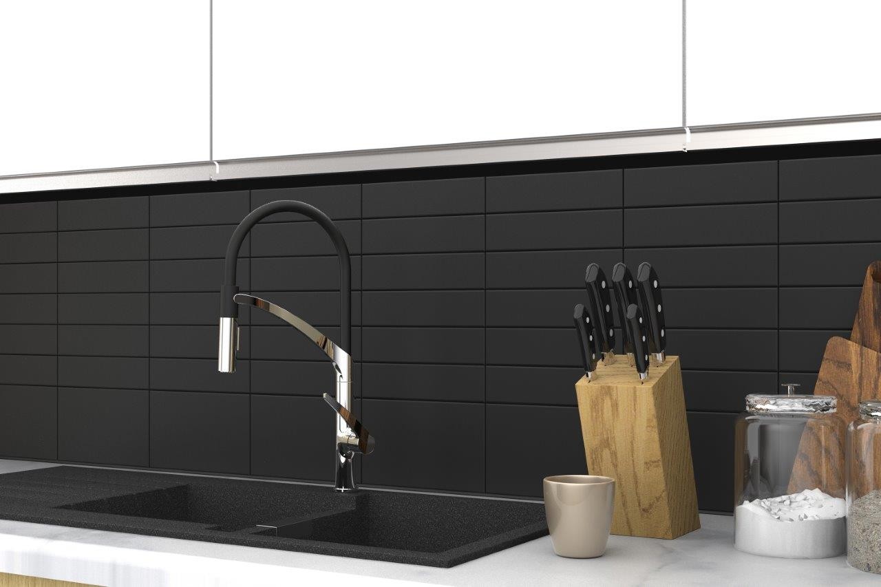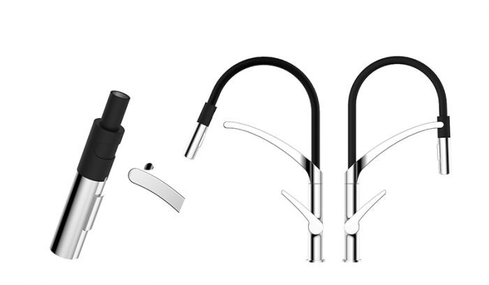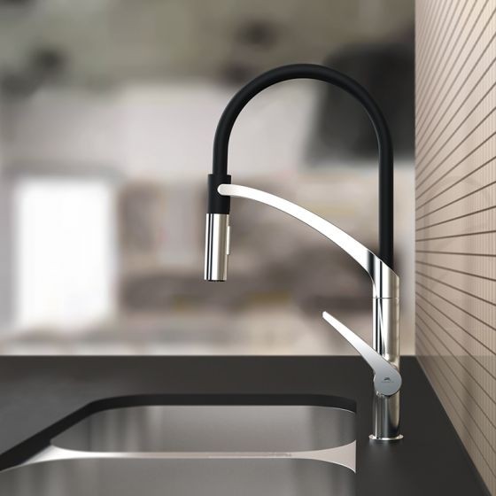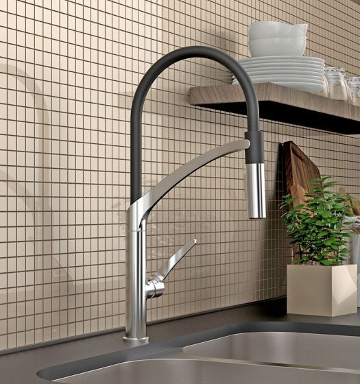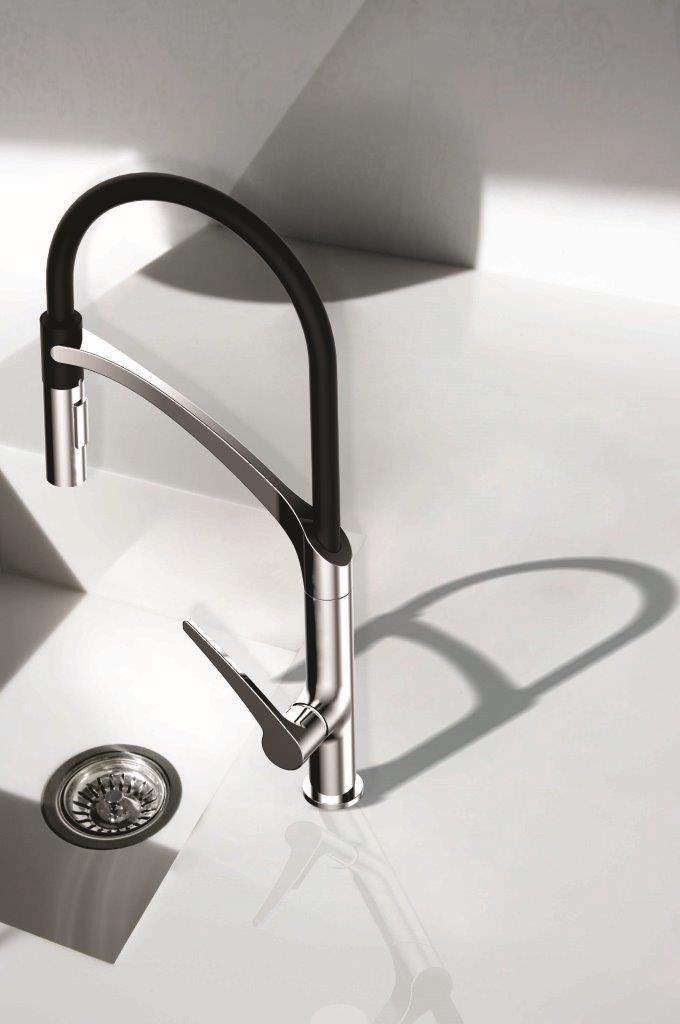 - Flexibilním masivní rameno se sprškou v černé barvě, uchycování spršky pomocí magnetu