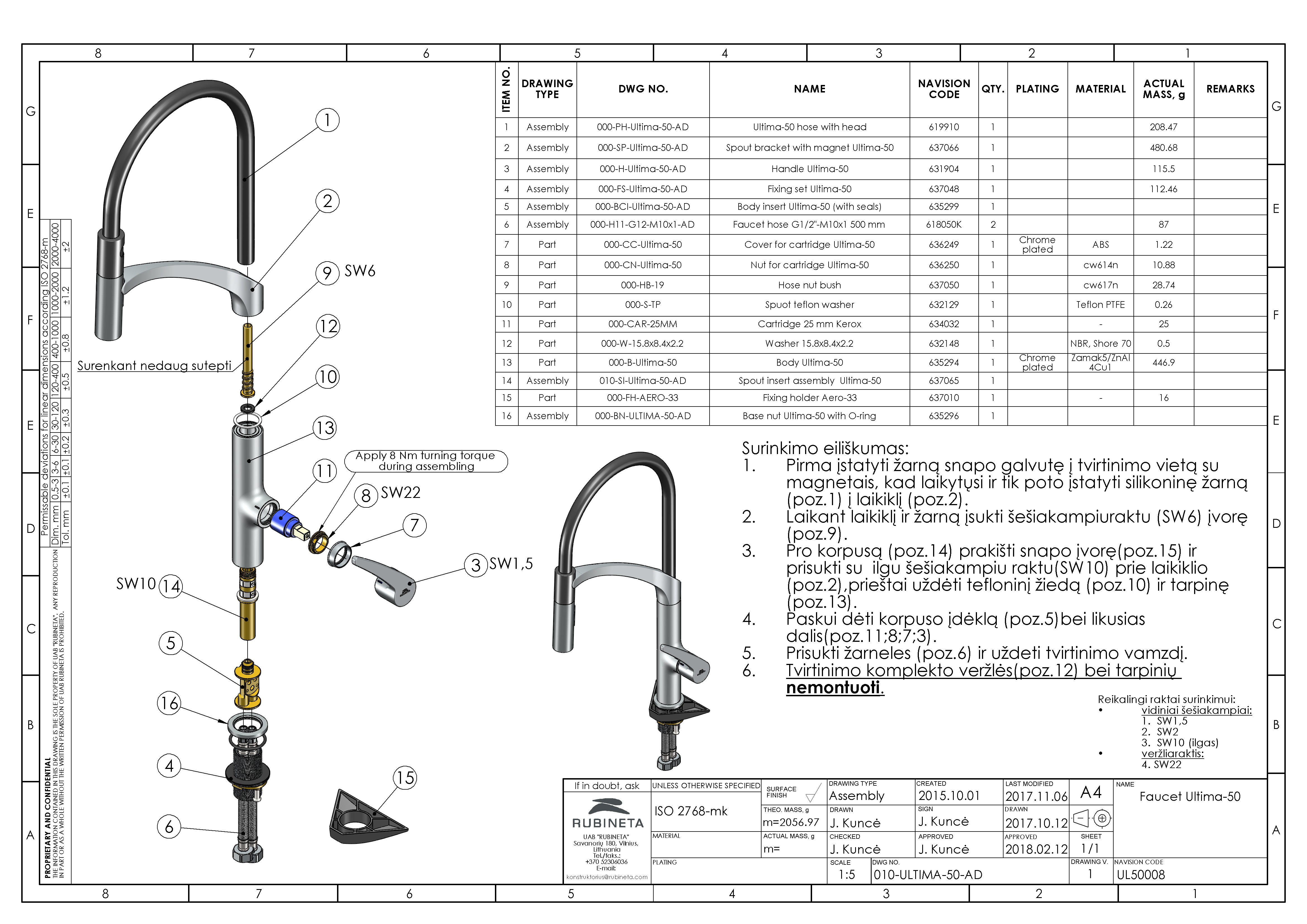 Dřezová stojánková vodovodní baterie ULTIMA U-50 vyniká vysoce kvalitním zpracováním a spolehlivou funkčností všech součástí a materiálů.
