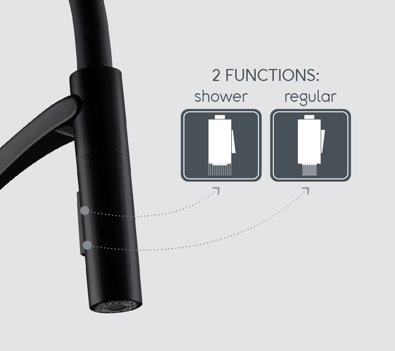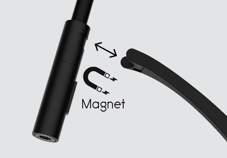 - Flexibilním masivní rameno (zlatá barva) se sprškou v černé barvě, uchycování spršky pomocí magnetu
