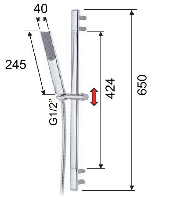 - Příslušenství: sprchová hlavice, hadice, posuvný držák sprchy, instalační materiál