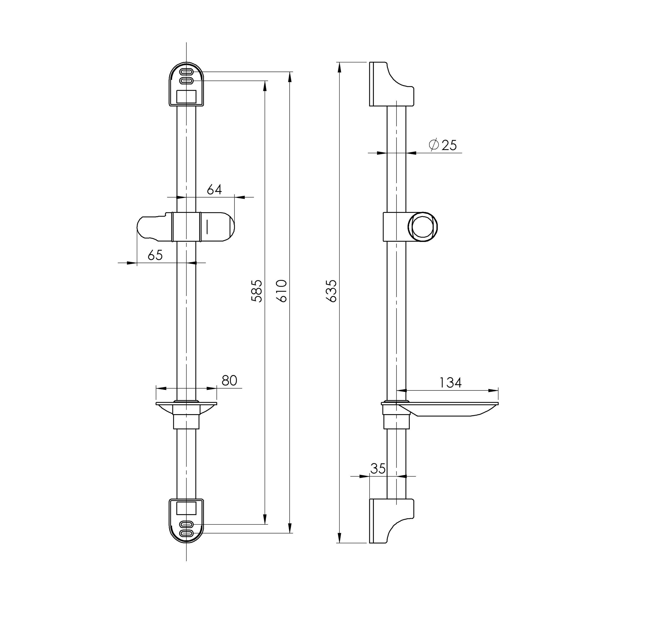 - Rozměry: délka 63,5 cm, průměr Ø 25 mm