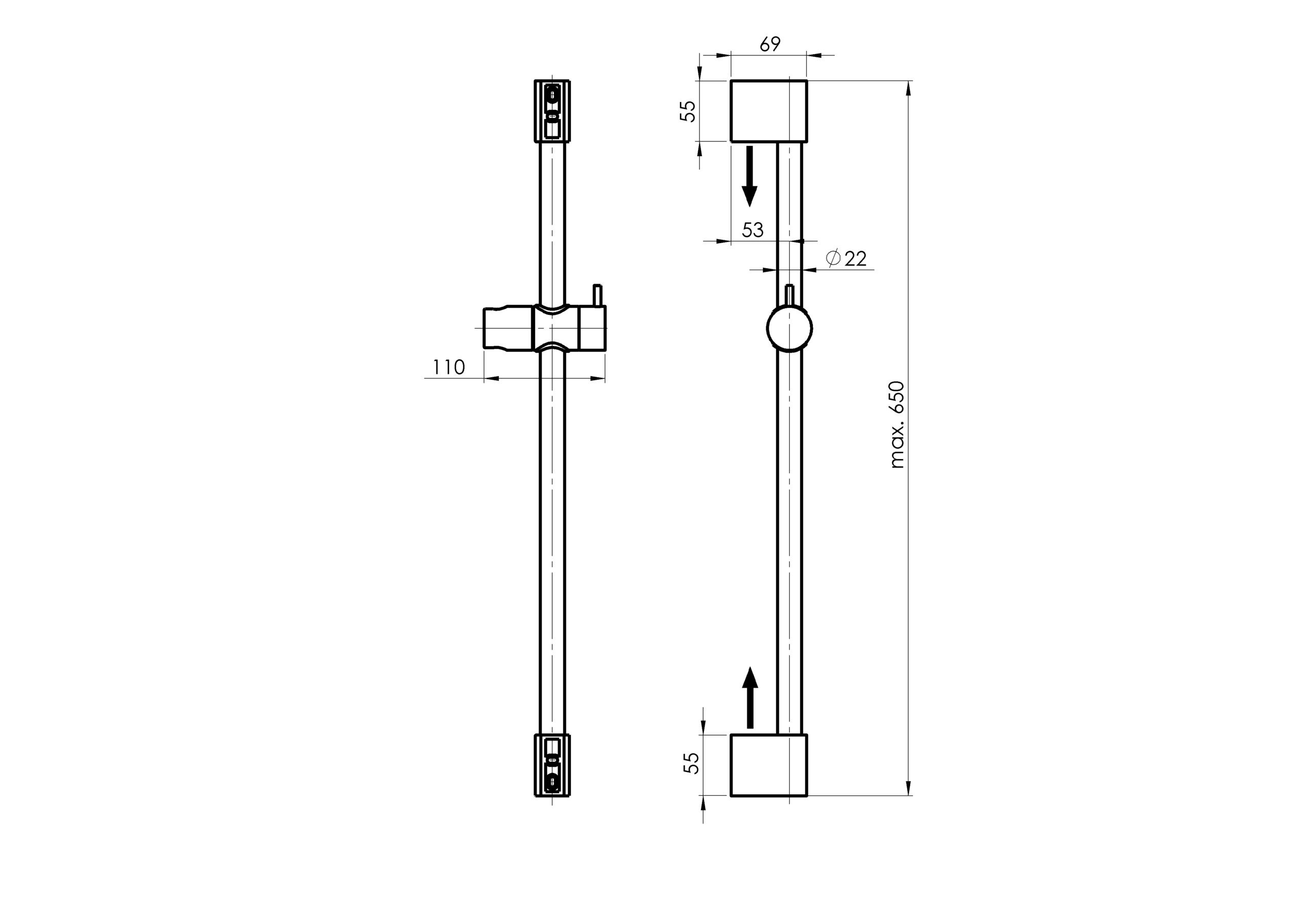 - Rozměry: výška 650 mm, průměr tyče Ø 22 mm