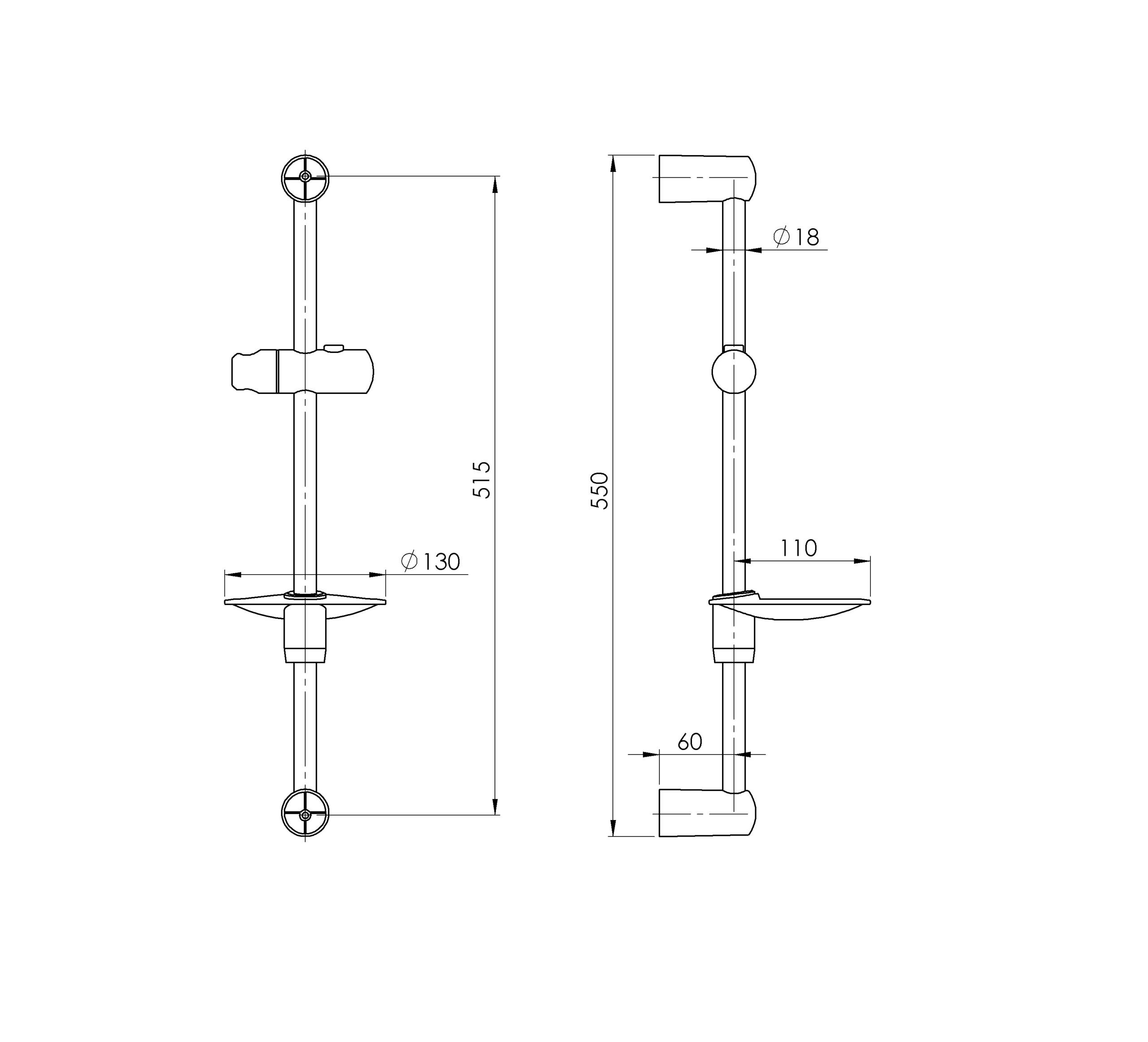 - Rozměry: 55 cm, průměr Ø 18 mm