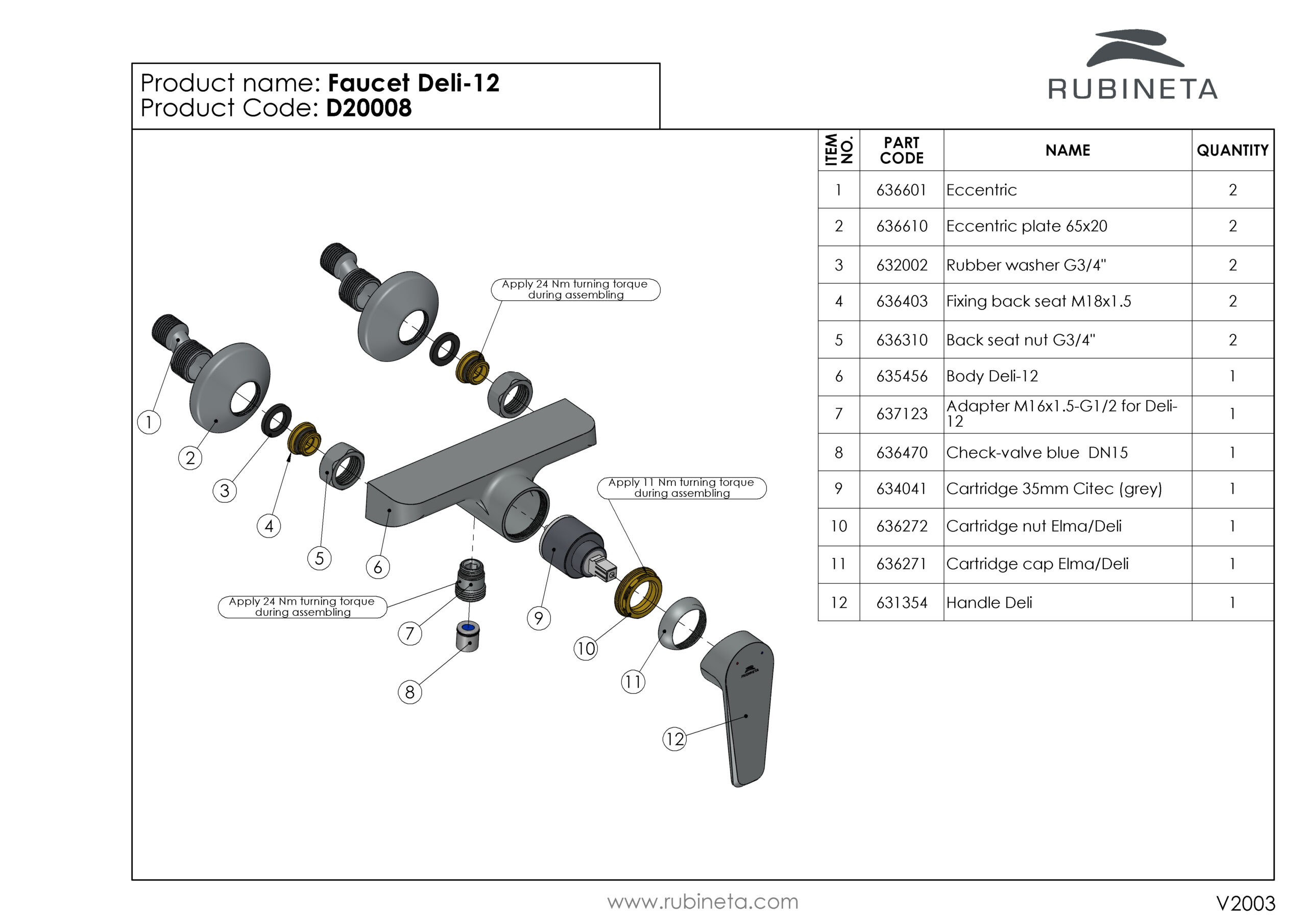 Přednosti nástěnné vodovodní baterie DELI-12: