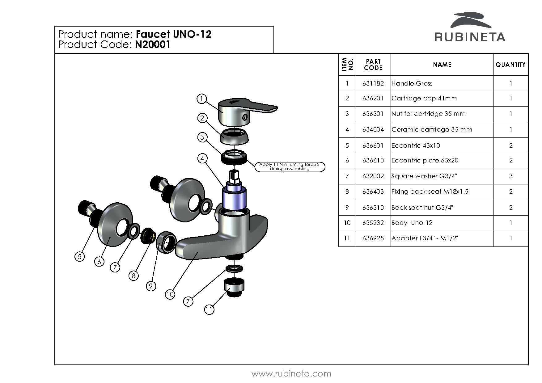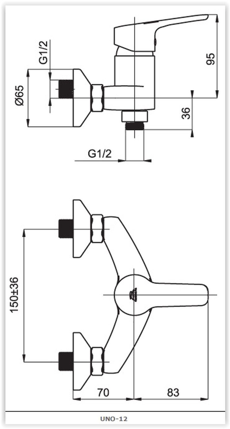 Sprchová nástěnná vodovodní baterie UNO-12 vyniká vysoce kvalitním zpracováním a spolehlivou funkčností všech součástí a materiálů.