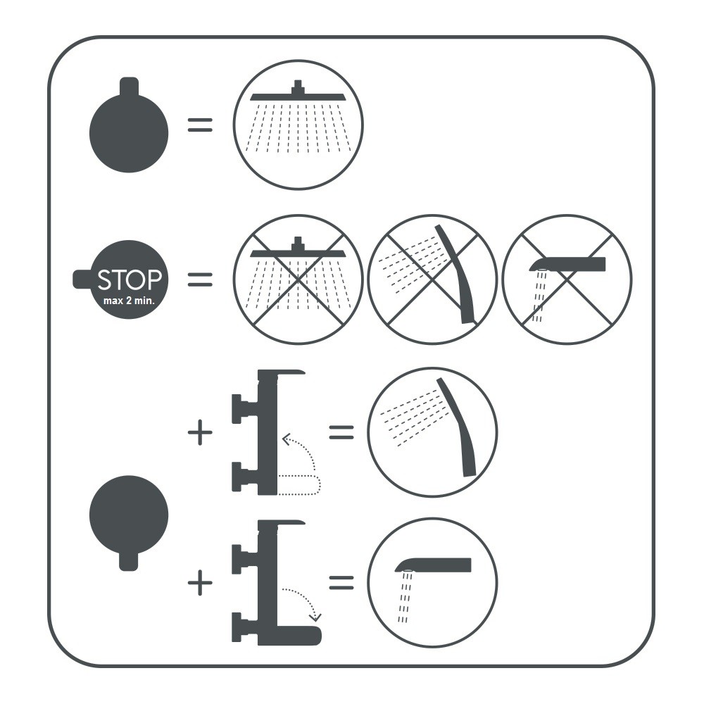 POZOR - Sprchové a vanové baterie lze používat pouze s dodatečnou instalací dílu – zpětné klapky, která zabraňuje zpětnému nasátí vody a tím znečištění vodovodního řádu.