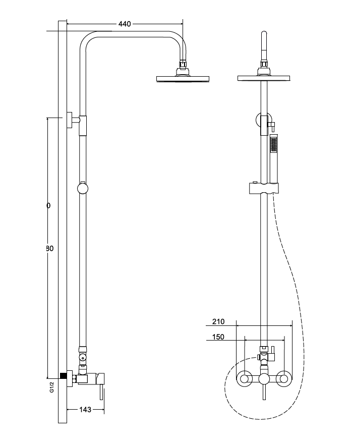 • Set obsahuje baterii, hlavovou sprchu s držákem, ruční sprchu a hadici
