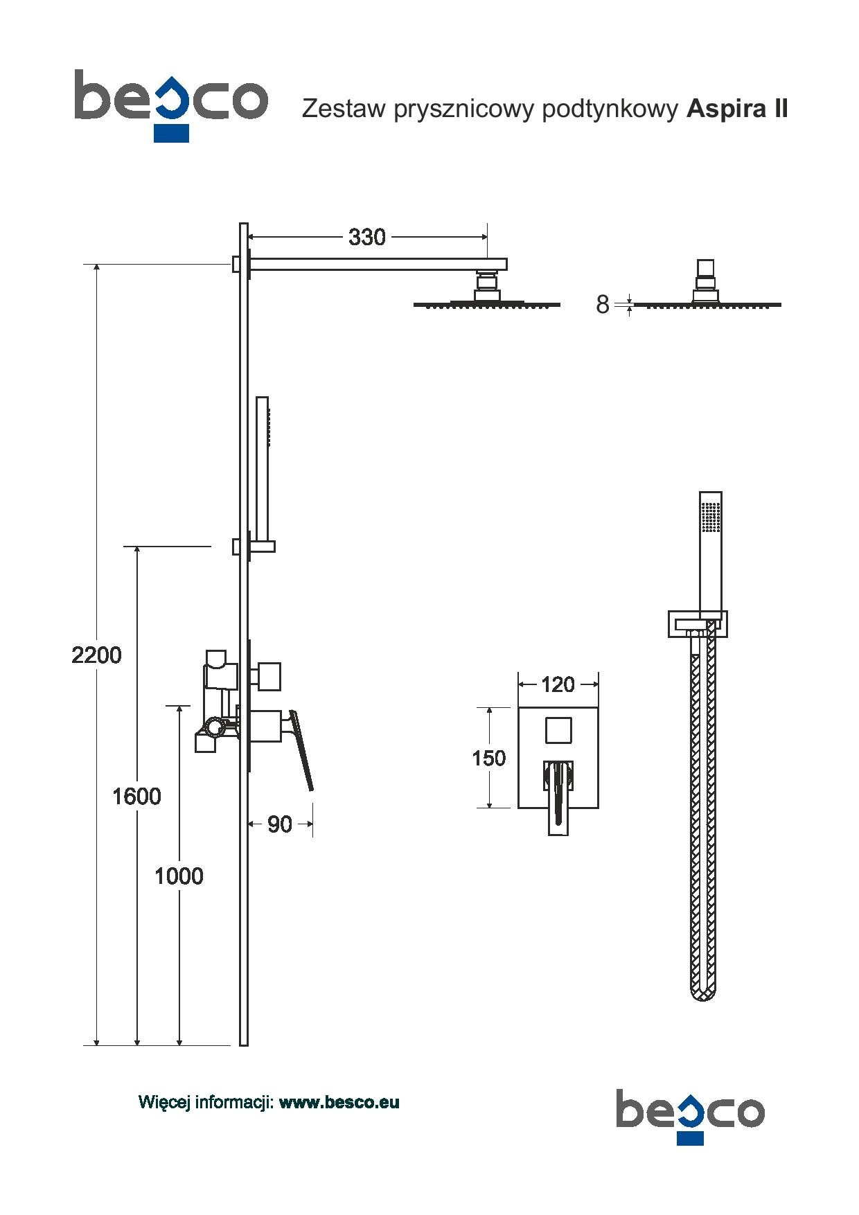 Součástí balení je podomítková baterie ASPIRA I + podomítkový montážní box + ruční sprcha (plast) + sprchová hadice + vývod a držák ruční sprchy + hlavová sprcha (SLIM - kov) s držákem.