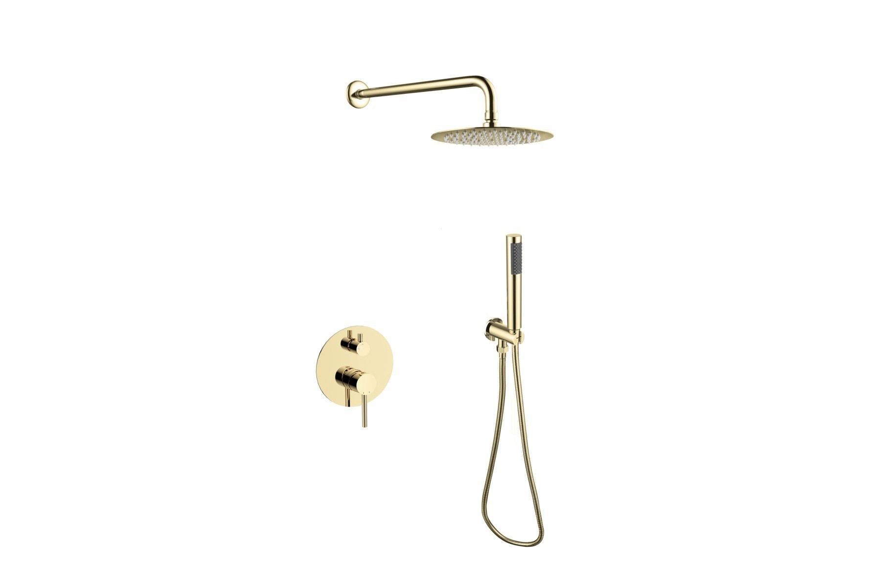 • Set obsahuje podomítkovou baterii, vývod ze stěny, ruční sprchu, hadici sprchy a držák