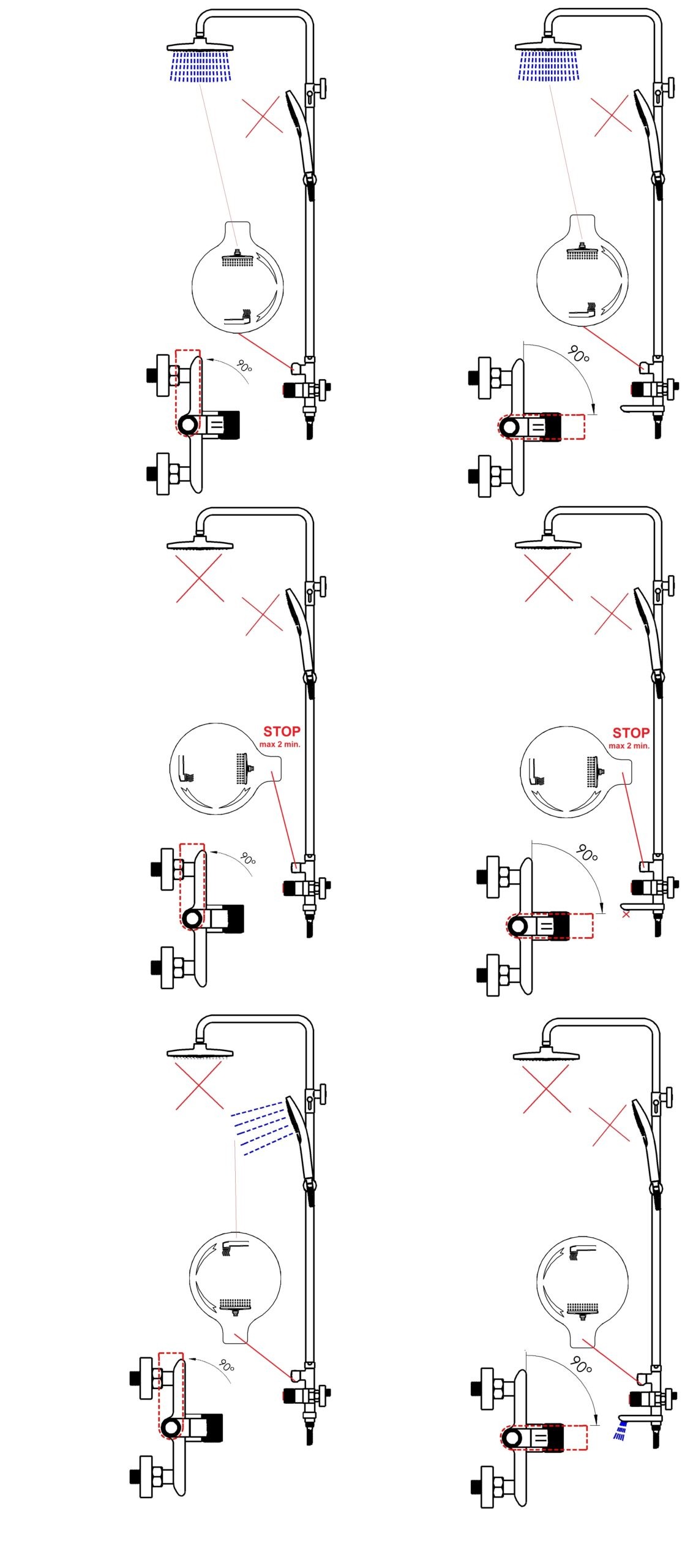 POZOR - Sprchové a vanové baterie lze používat pouze s dodatečnou instalací dílu – zpětné klapky, která zabraňuje zpětnému nasátí vody a tím znečištění vodovodního řádu.