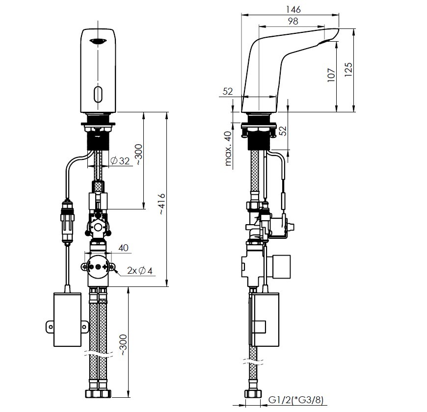 Senzorová umyvadlová stojánková baterie ECOSENS na baterie (4 ks AA baterií) vyniká vysoce kvalitním zpracováním a spolehlivou funkčností všech součástí a materiálů.