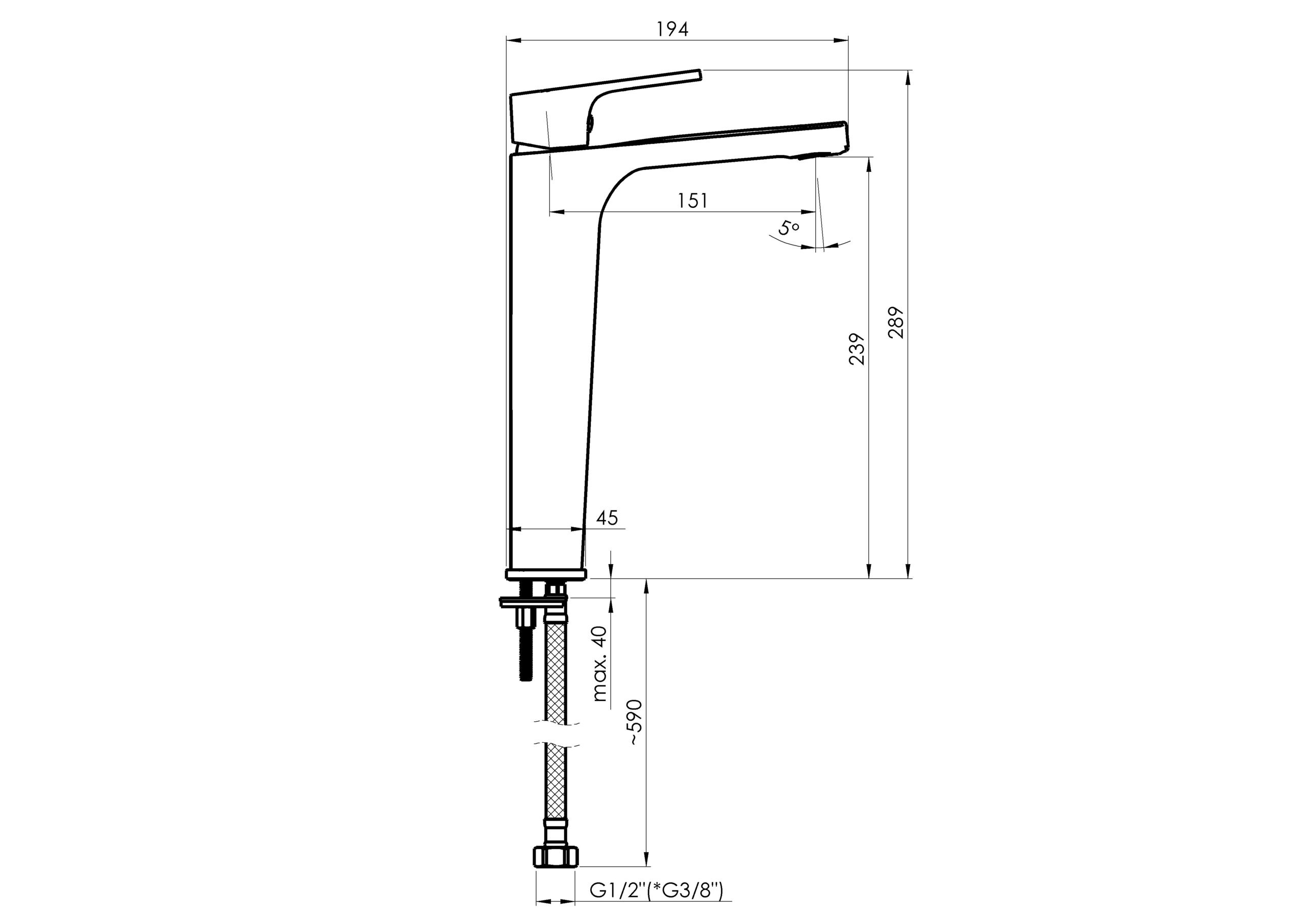 Umyvadlová vysoká baterie MODENA-18D černá: