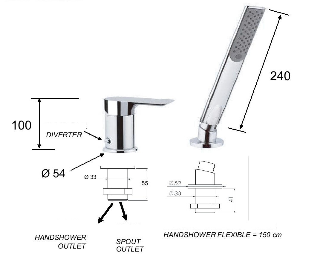 - S příslušenstvím: sprcha se 120 cm dlouhou hadicí, upevňovací sada