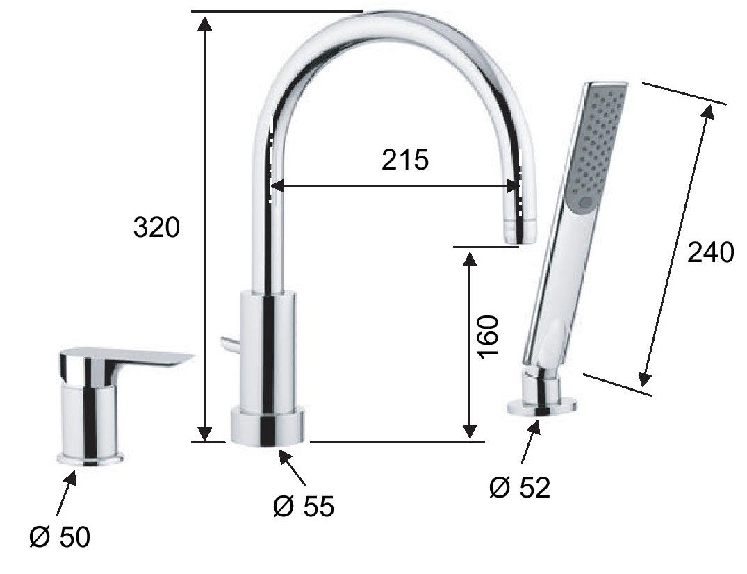 • Vanová baterie stojánková tříotvorová s příslušenstvím