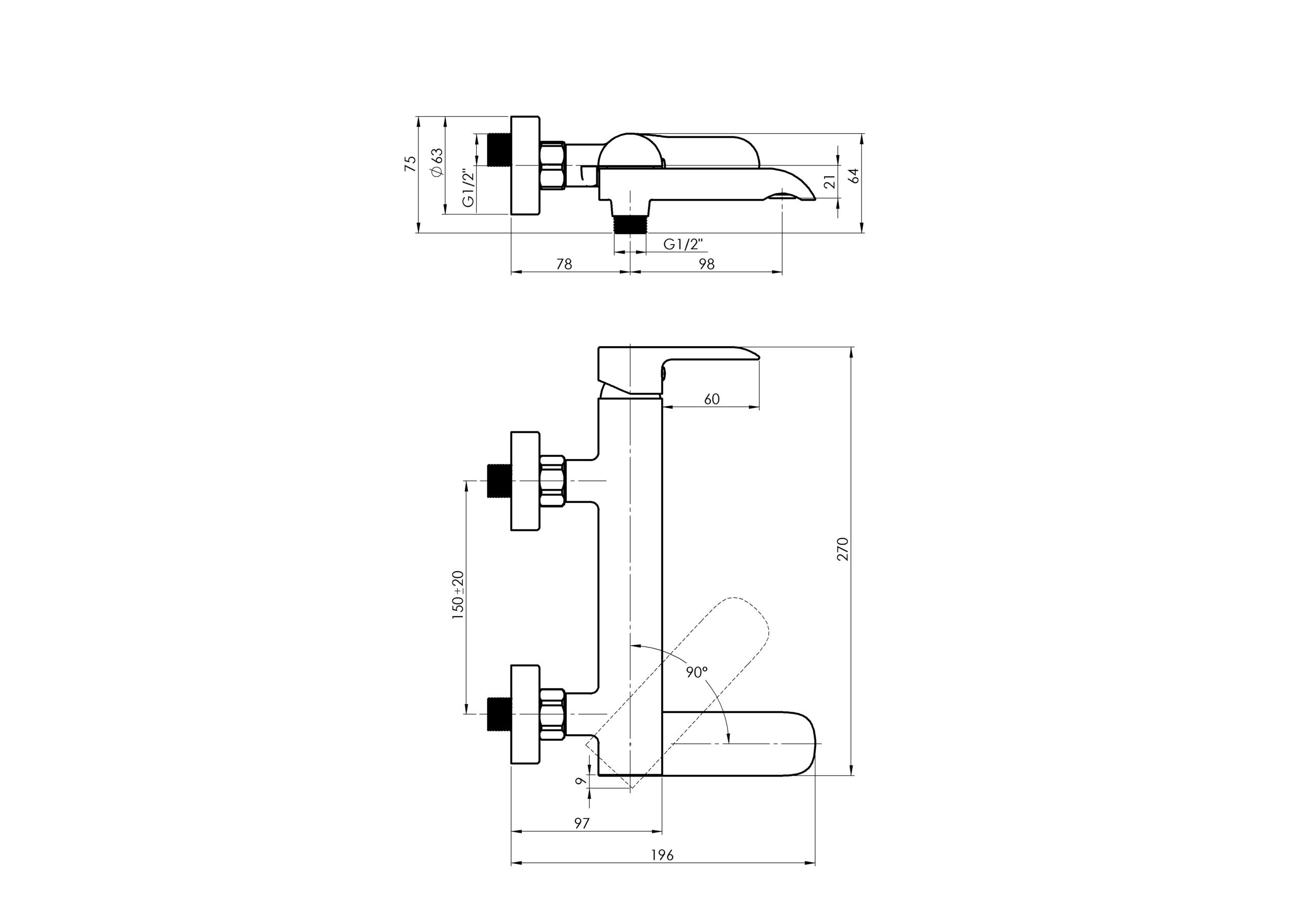 - Vanová nástěnná se sklopným výtokovým ramínkem, který zároveň slouží jako přepínač