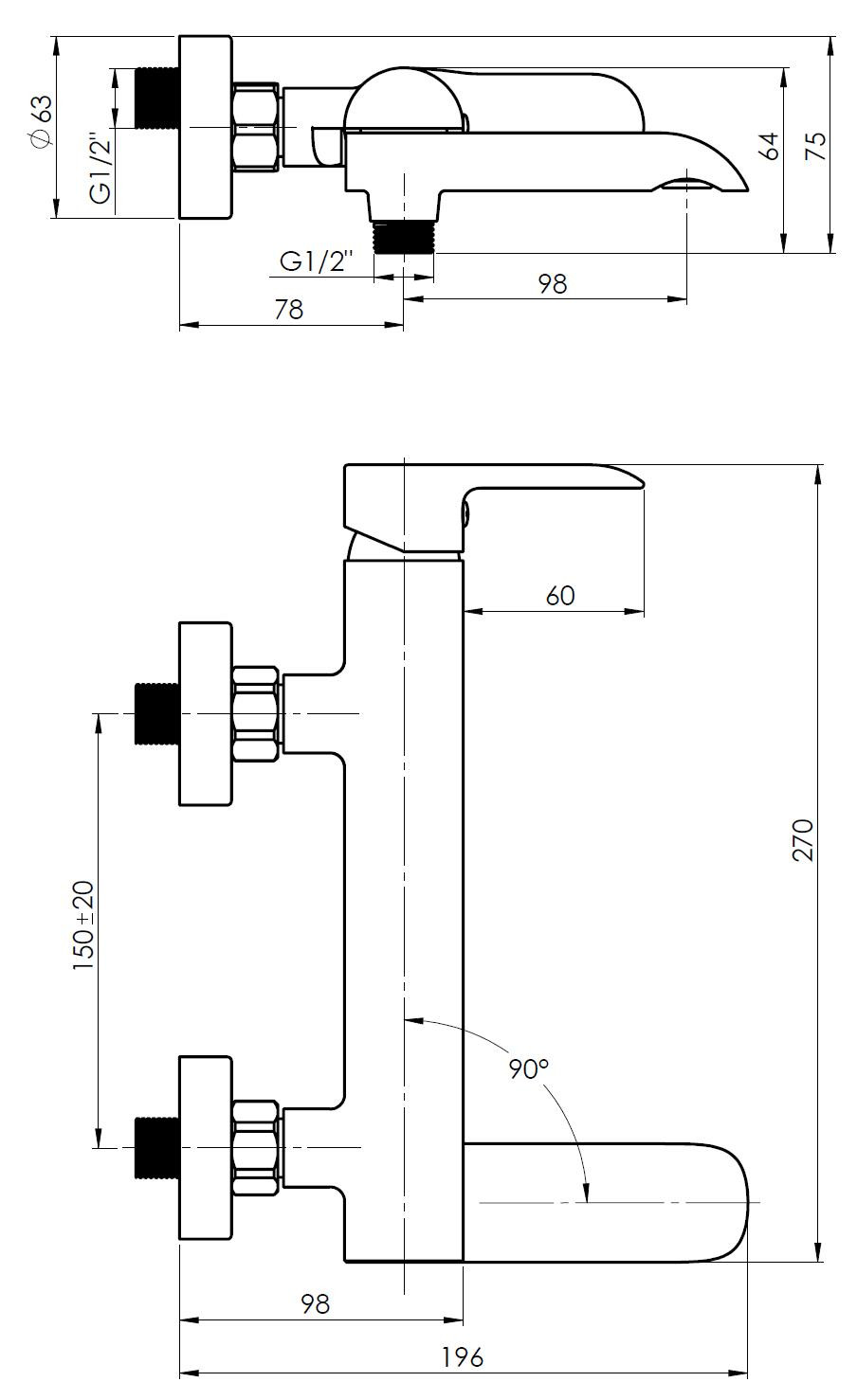Vanová nástěnná vodovodní baterie ULTRA U-10/K NEW vyniká vysoce kvalitním zpracováním a spolehlivou funkčností všech součástí a materiálů.