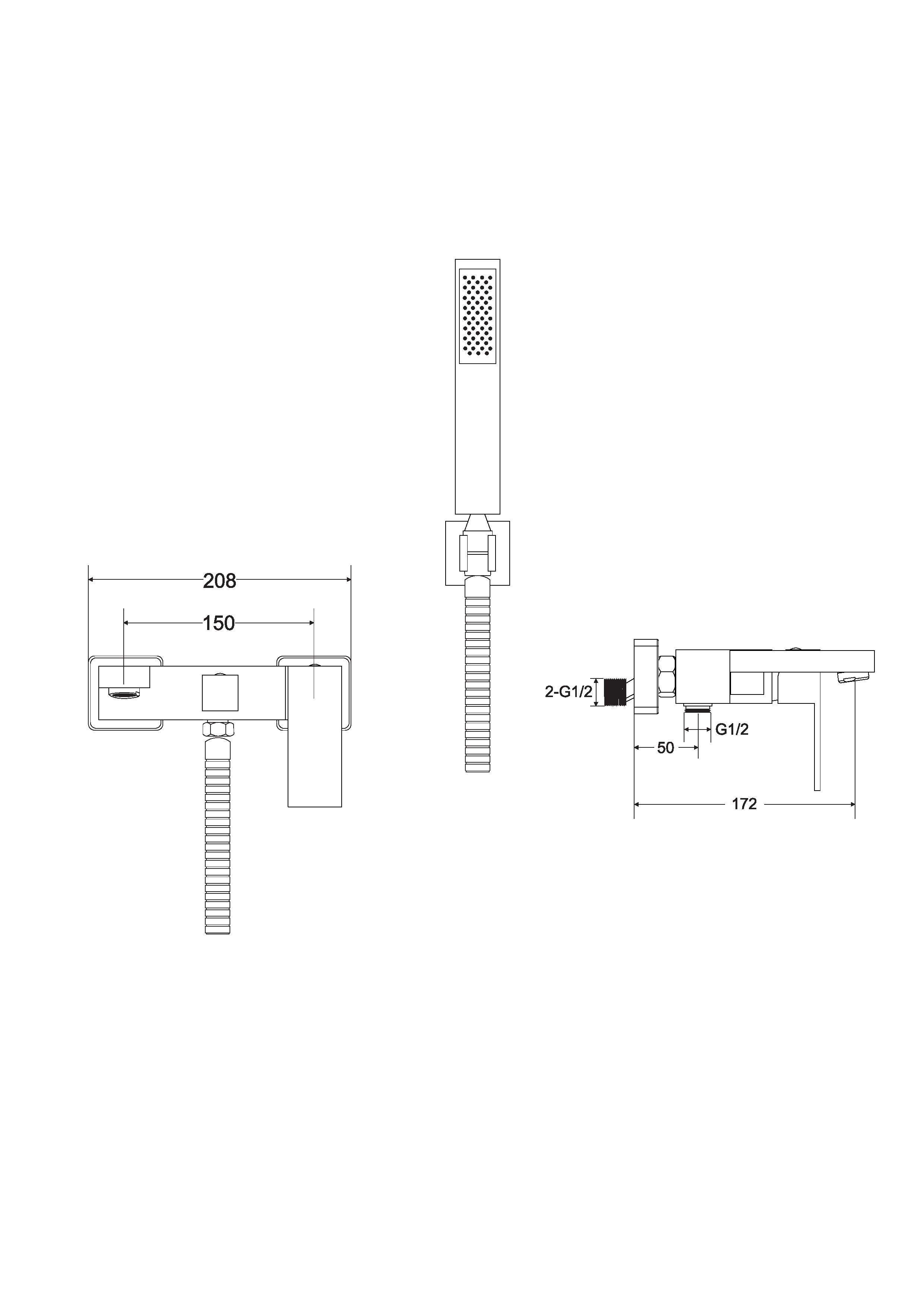 - Sprchová hlavice, hadice, držák na stěnu