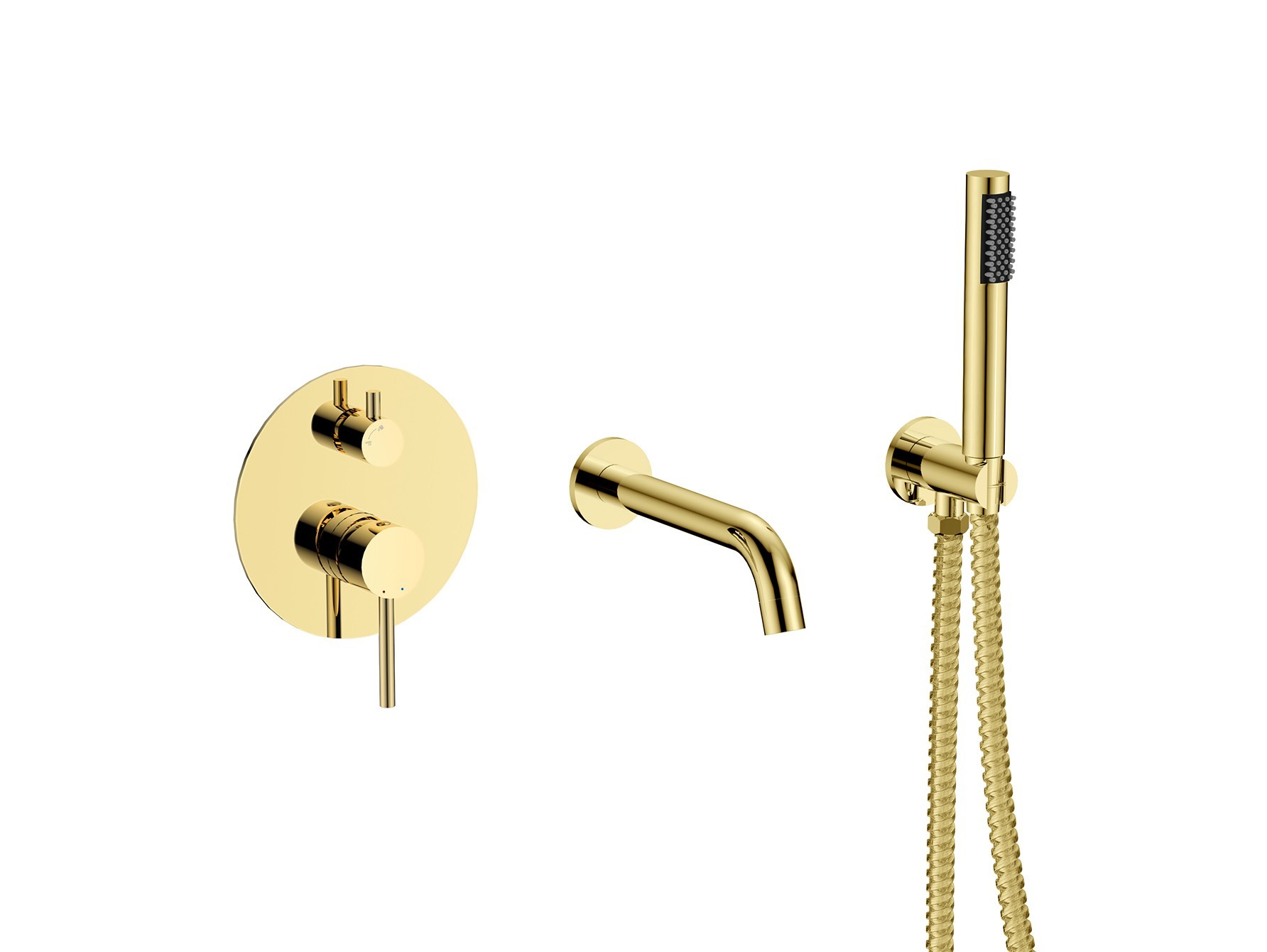 - Set obsahuje podomítkovou baterii, vývod ze stěny s držákem, ruční sprchu a hadici