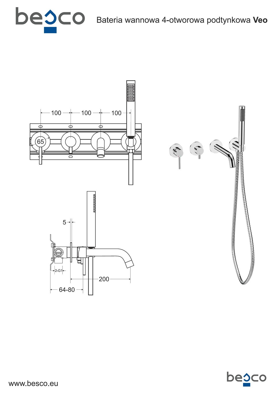 Spojením současného minimalismu s klasickými detaily vznikla série baterií VEO. Součástí balení VEO zlatá barva je podomítková baterie VEO + podomítkový modul + ruční sprcha + sprchová hadice + vývod a držák ruční sprchy.