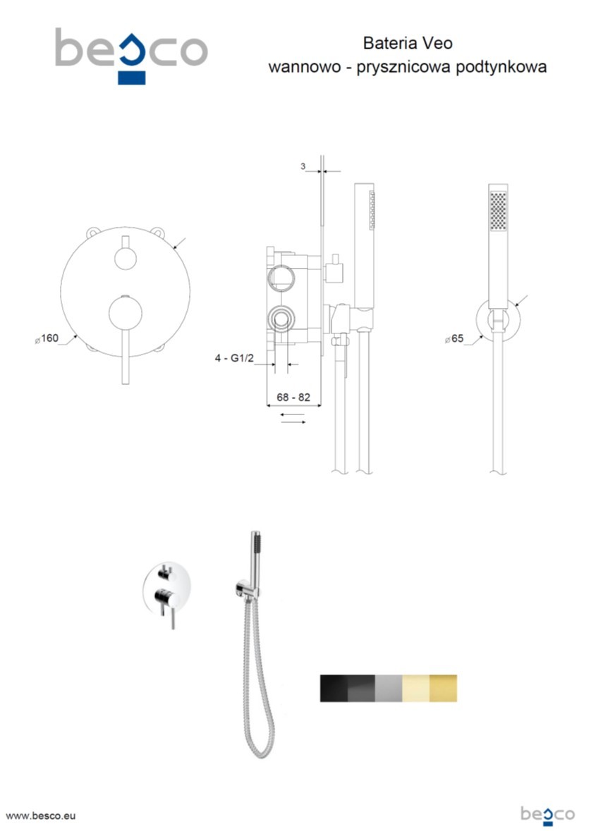 Spojením současného minimalismu s klasickými detaily vznikla série baterií VEO. Součástí balení VEO zlatá lesklá barva je podomítková baterie VEO + podomítkový modul + ruční sprcha + sprchová hadice + vývod a držák ruční sprchy.