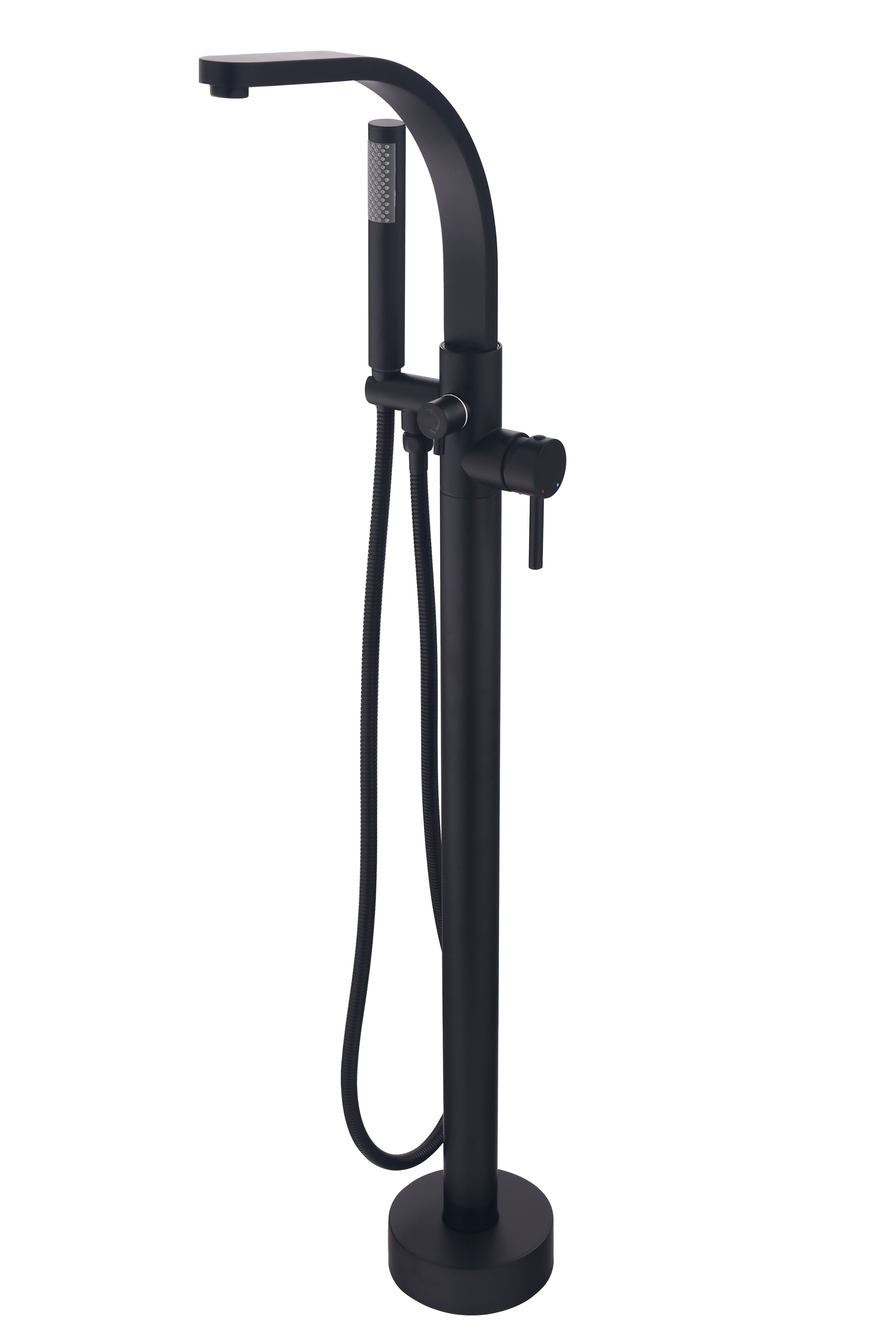 Vanová stojánková baterie je dodávána včetně příslušenství (sprchová růžice a hadice).