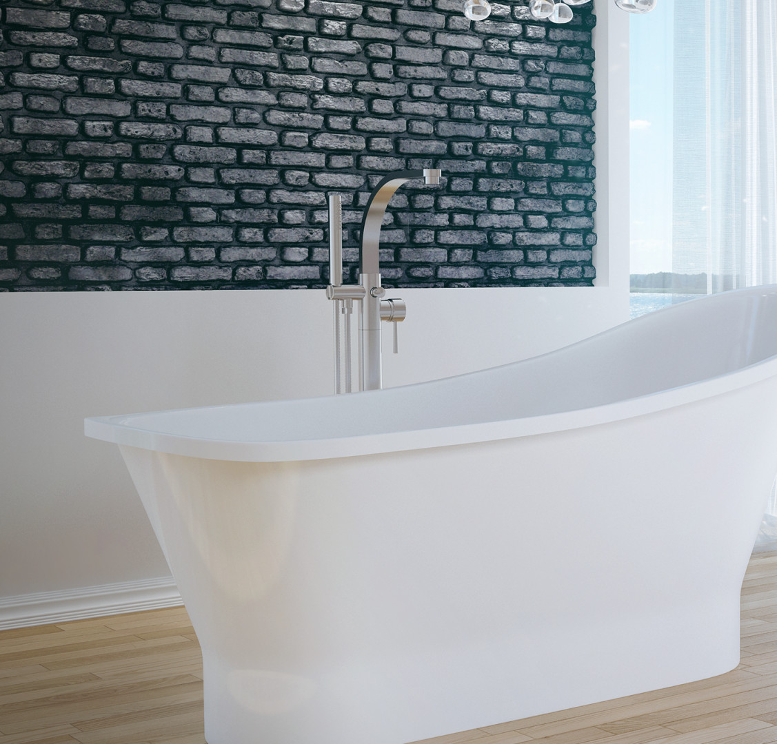 Stojánková baterie do podlahy vypadá skvěle v kombinaci s volně stojící vanou.