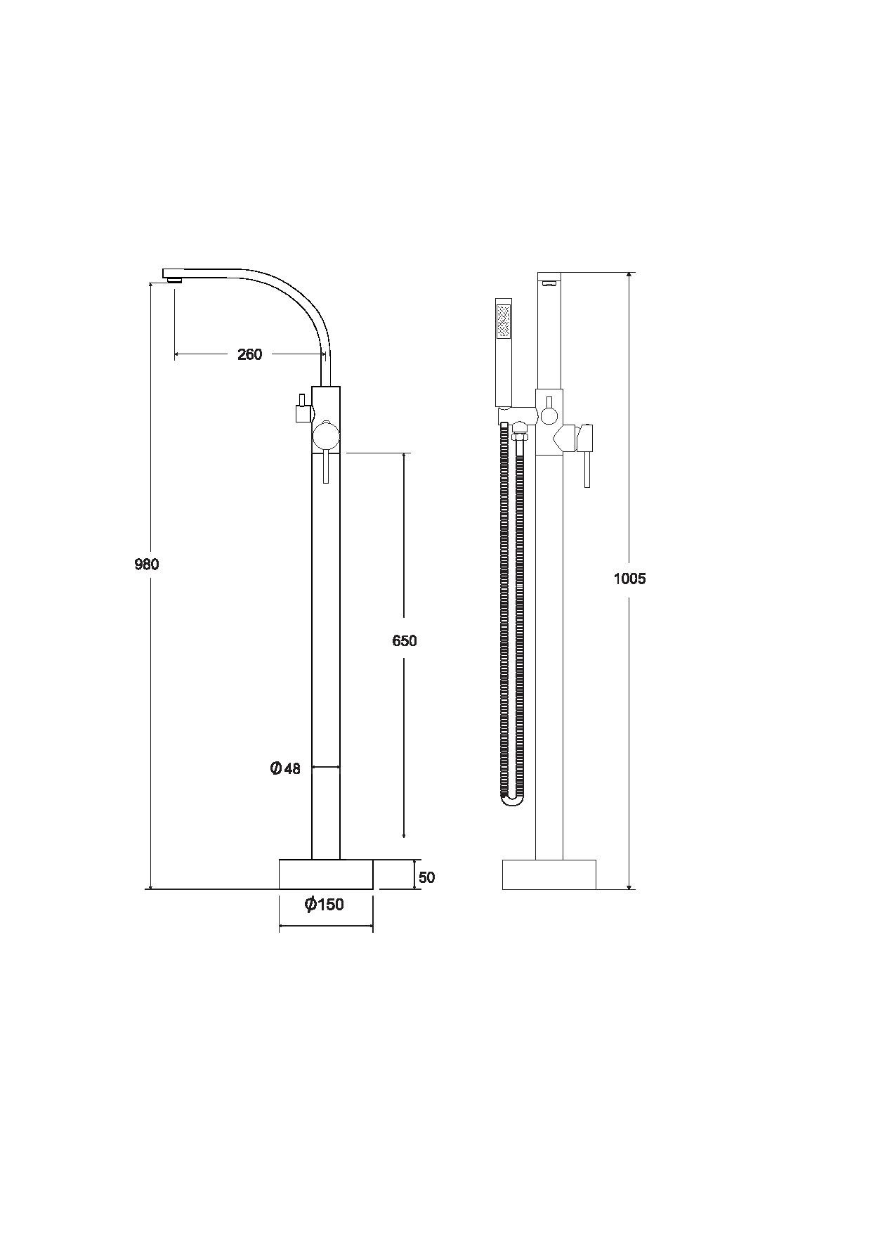 Vanová stojánková baterie je dodávána včetně příslušenství (sprchová růžice a hadice).