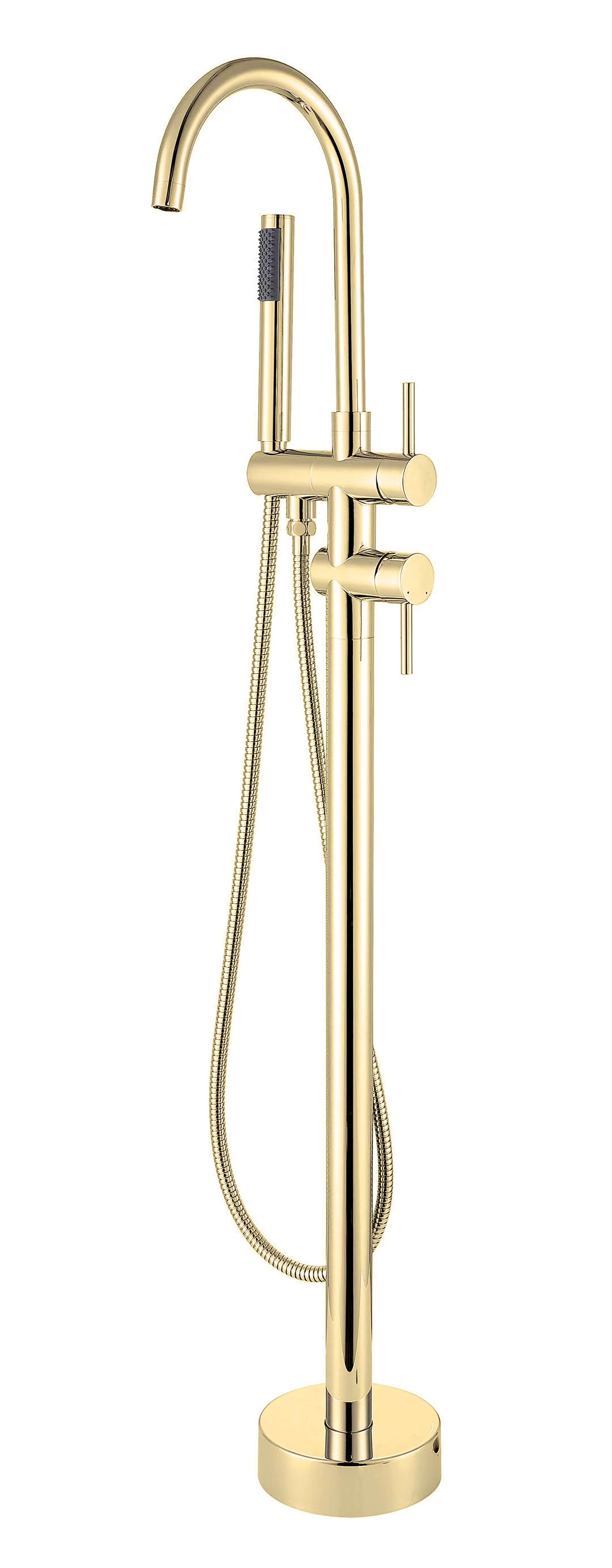 Vanová stojánková baterie je dodávána včetně příslušenství (sprchová růžice a hadice).