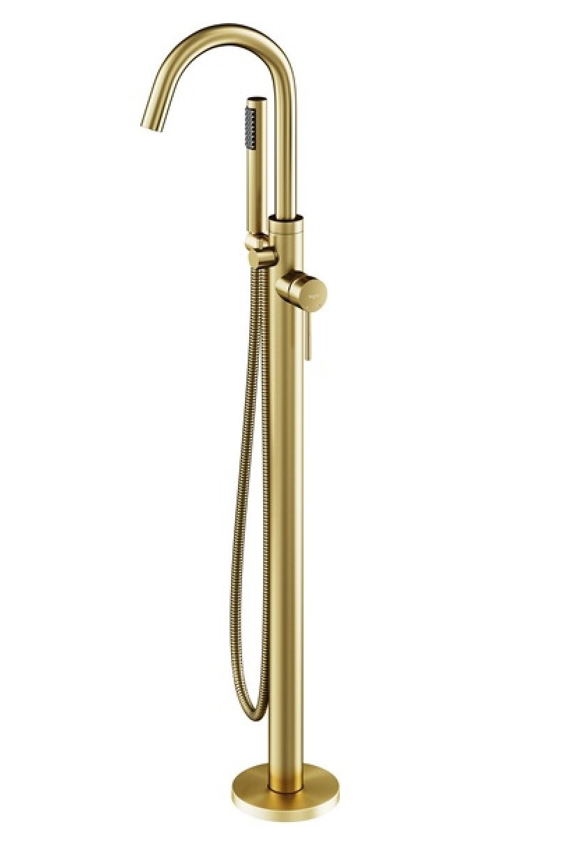 Stojánková baterie do podlahy vypadá skvěle v kombinaci s volně stojící vanou.