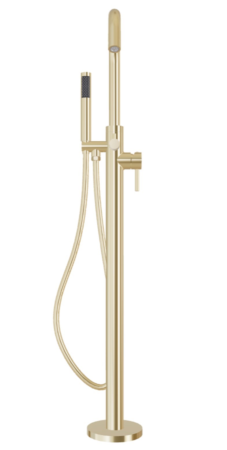 Stojánková baterie do podlahy vypadá skvěle v kombinaci s volně stojící vanou.