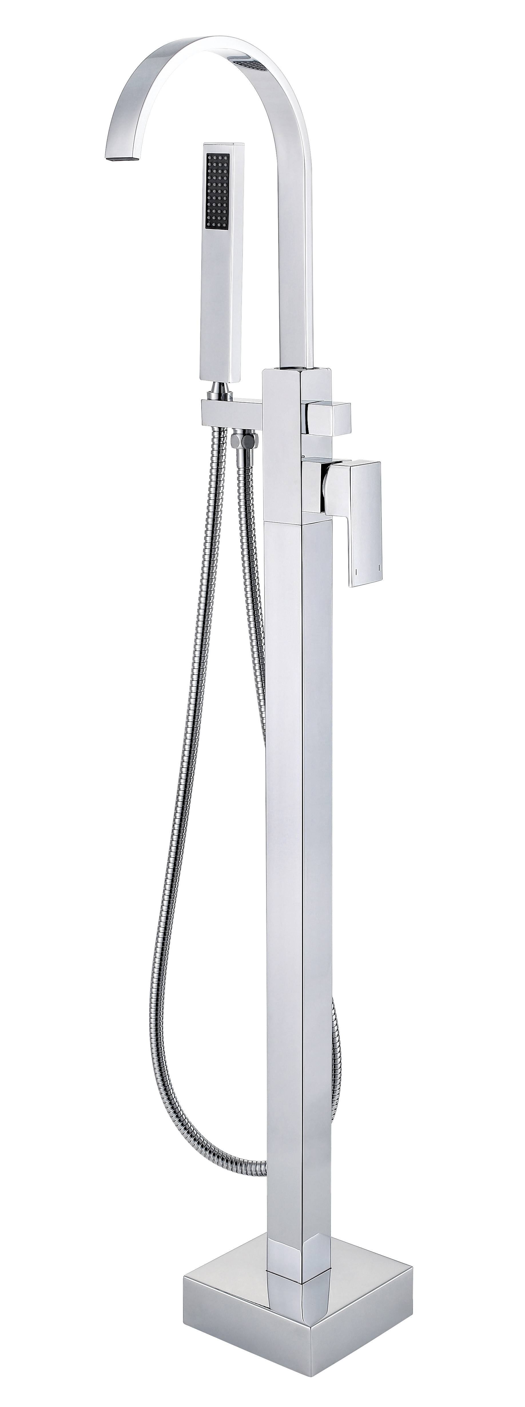 Vanová stojánková baterie je dodávána včetně příslušenství (sprchová růžice a hadice).